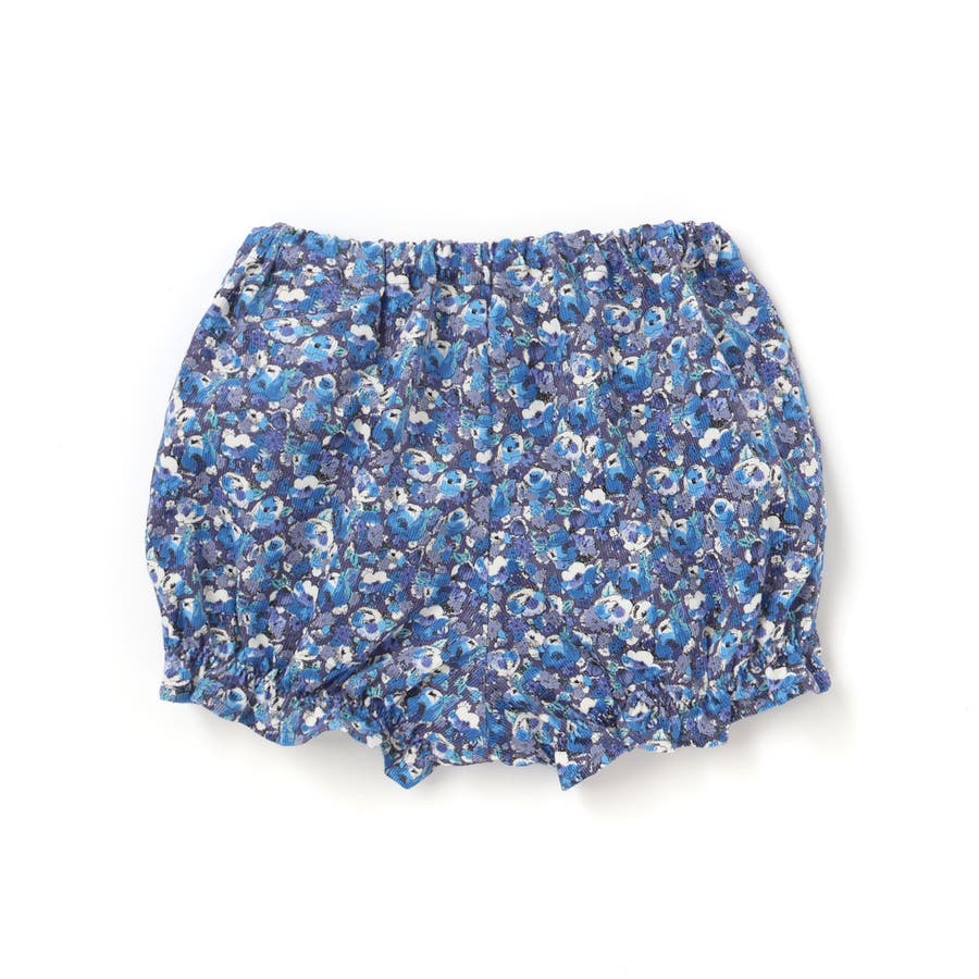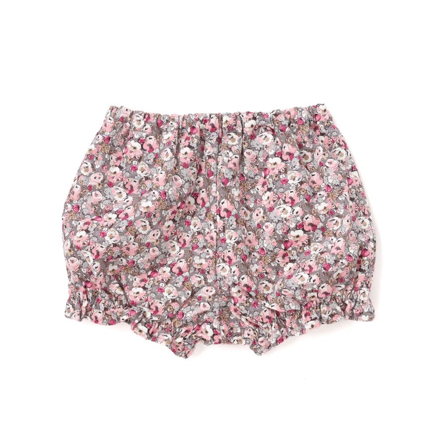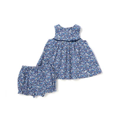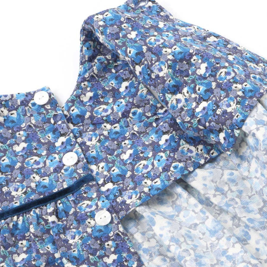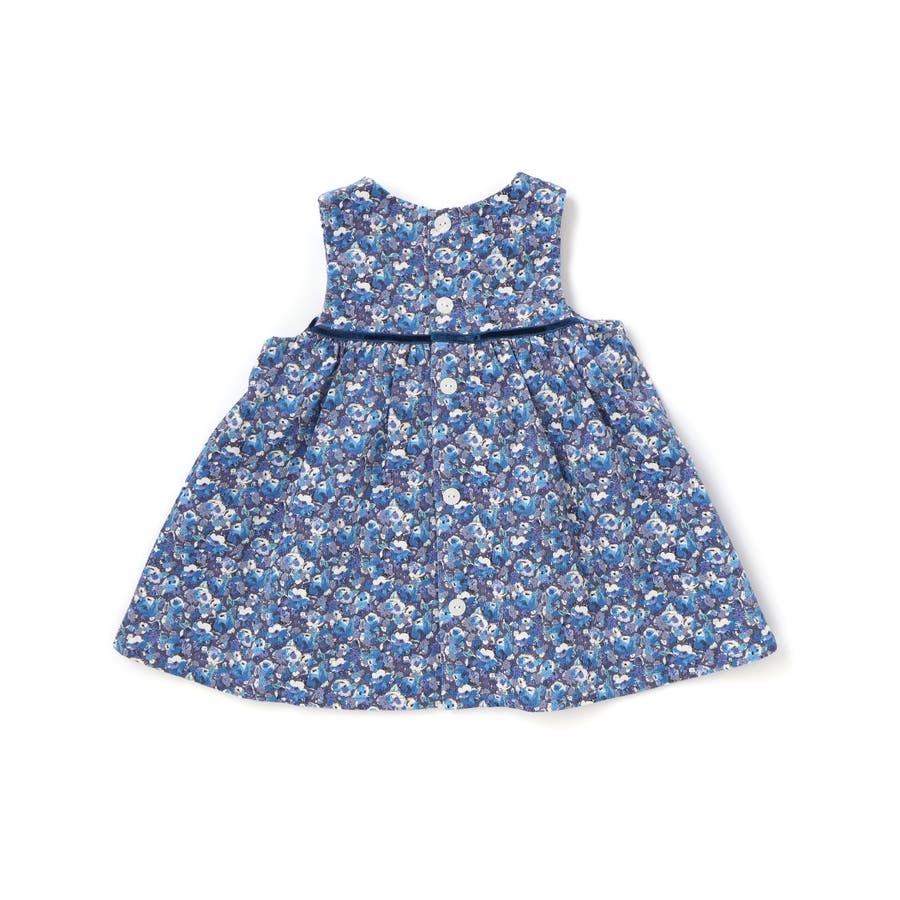 柔らかなシャツコール生地に、リバティ(Leila)柄をあしらった華やかなベビー用ワンピース+ブルマセット。