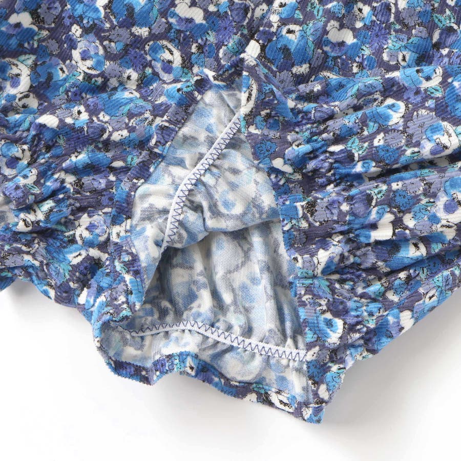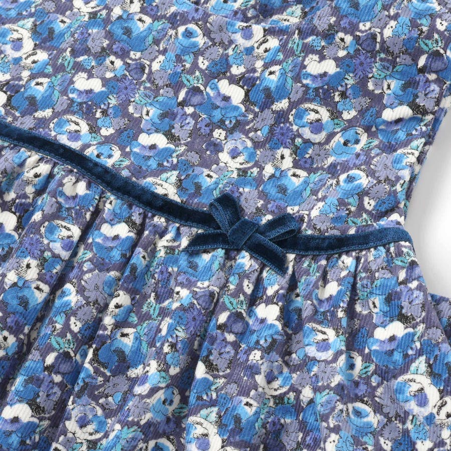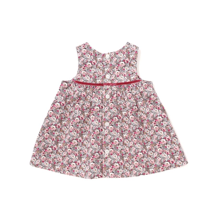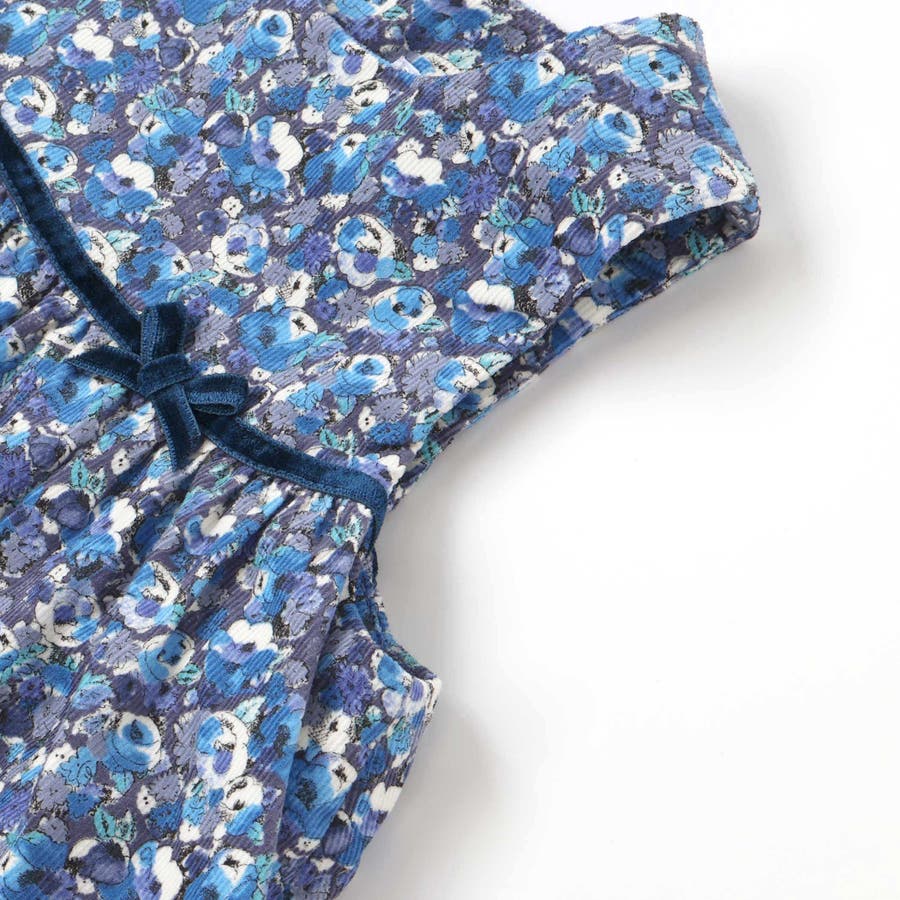 柔らかなシャツコール生地に、リバティ(Leila)柄をあしらった華やかなベビー用ワンピース+ブルマセット。