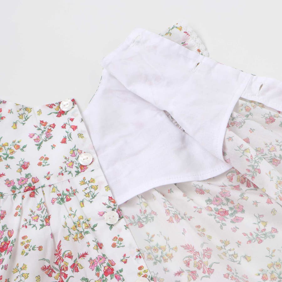 タナローン生地に、リバティ(BluebellFields)柄をあしらった上品さと可愛らしさのあるベビー用ワンピース+ブルマセット。