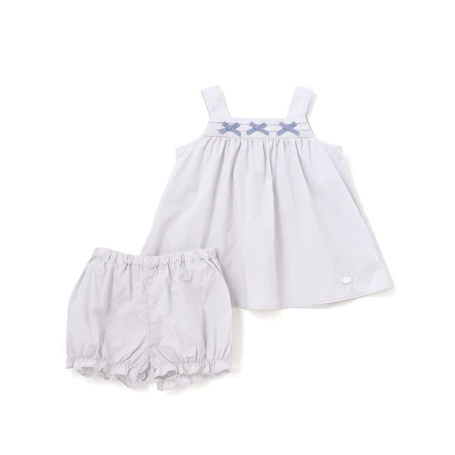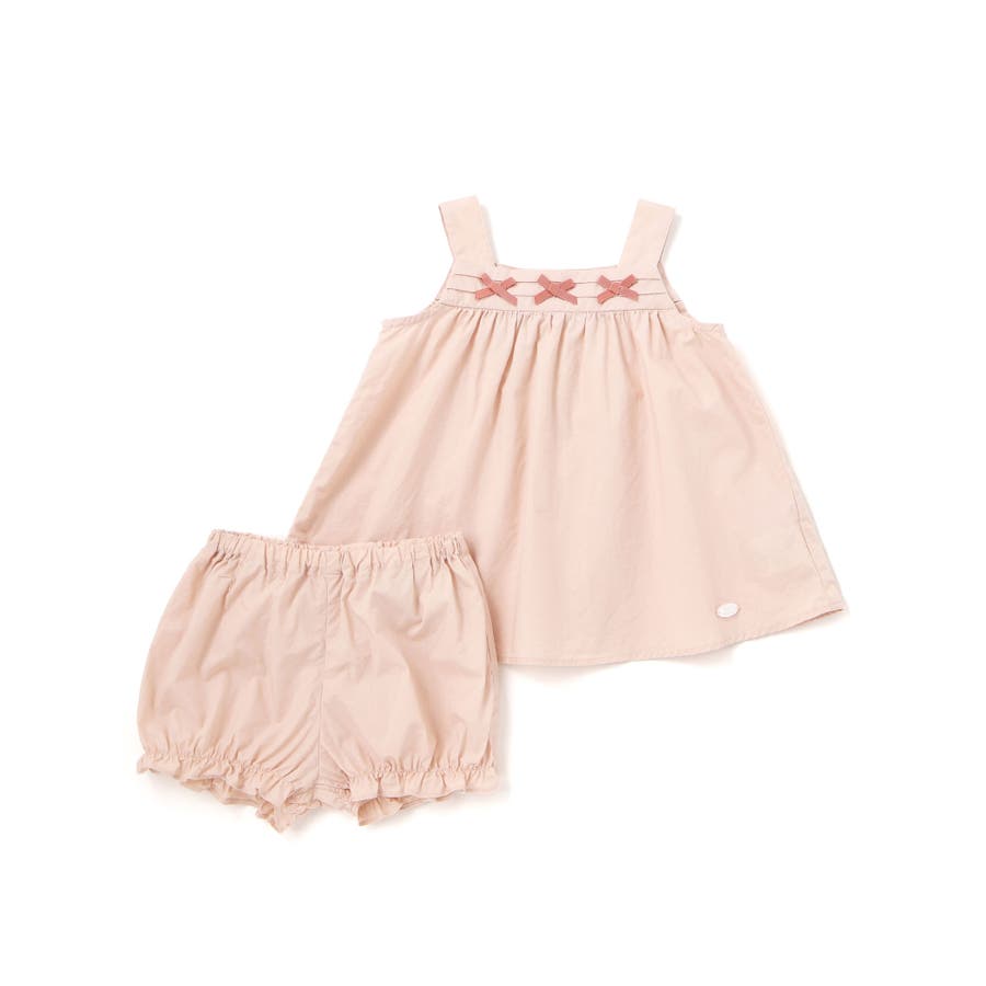 タイプライターピンタックリボンワンピース+ブルマセット ベビー(70~90cm)