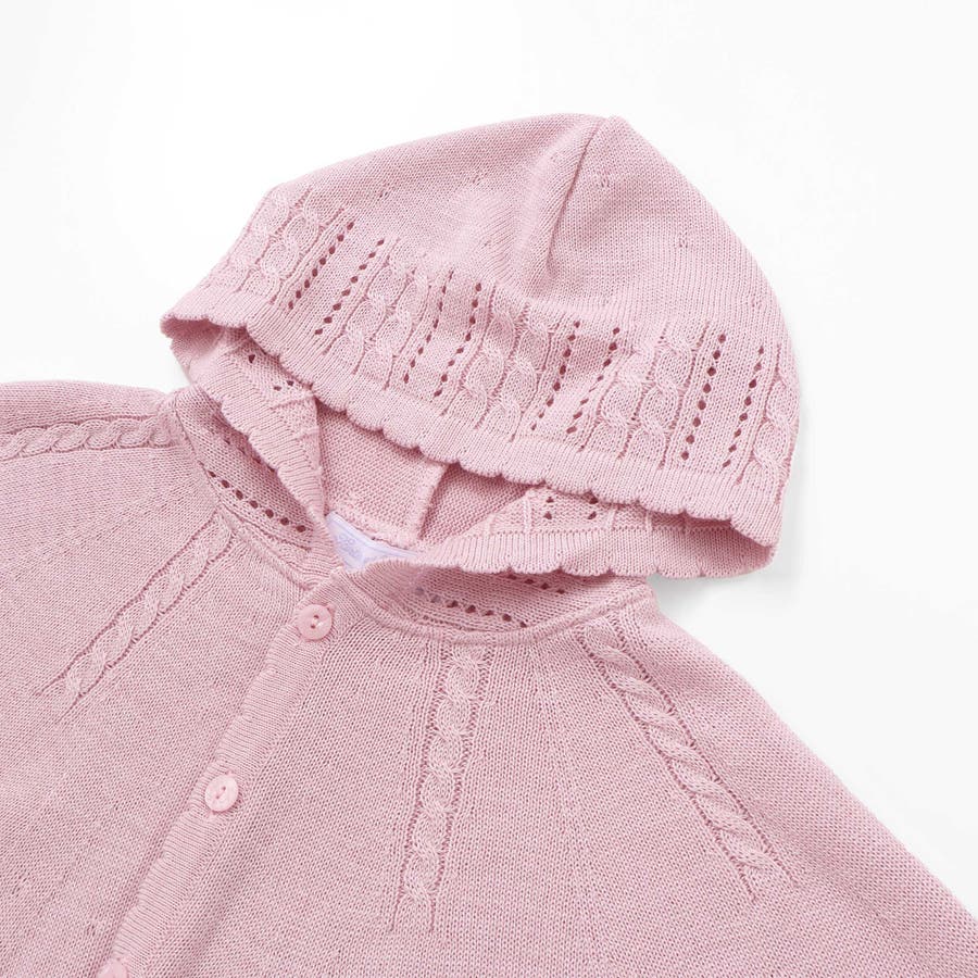 柔らかい風合いの綿アクリル糸を使用したベビー用セーターマント。