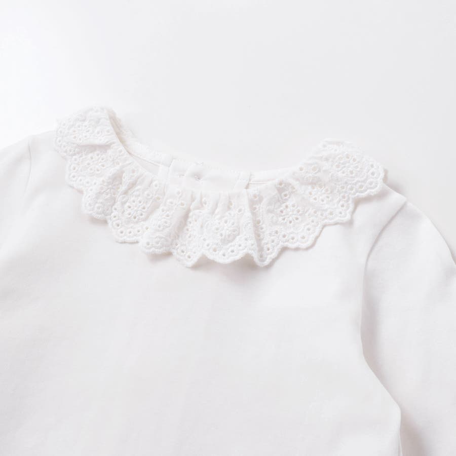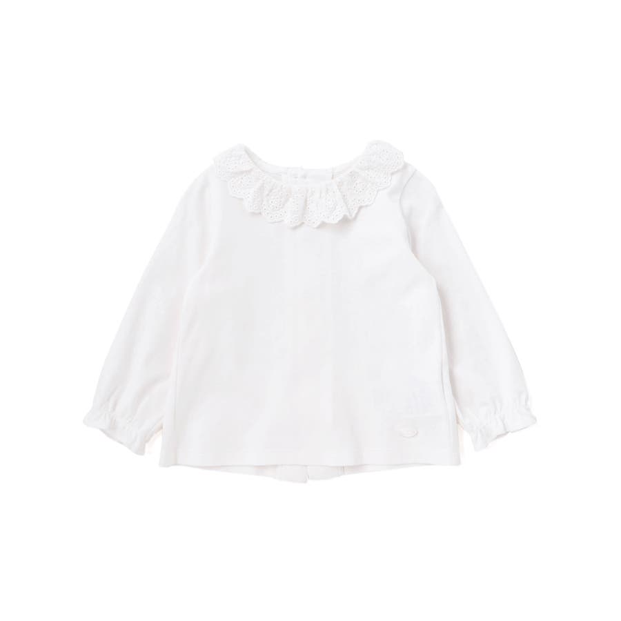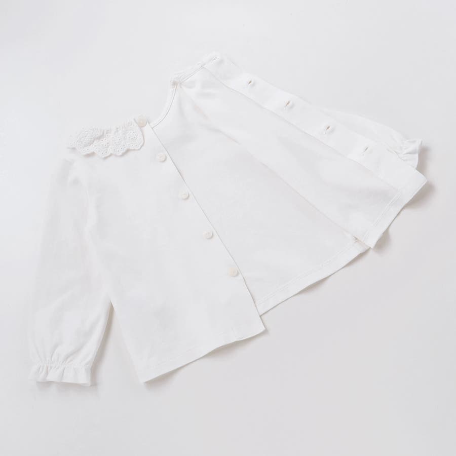 スーピマコットンバイオシルスムース後ろ開きレース襟ブラウスベビー(70~90cm…