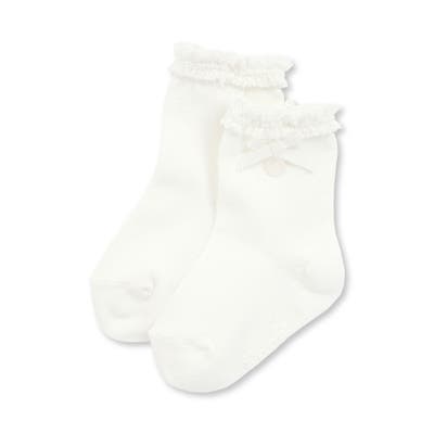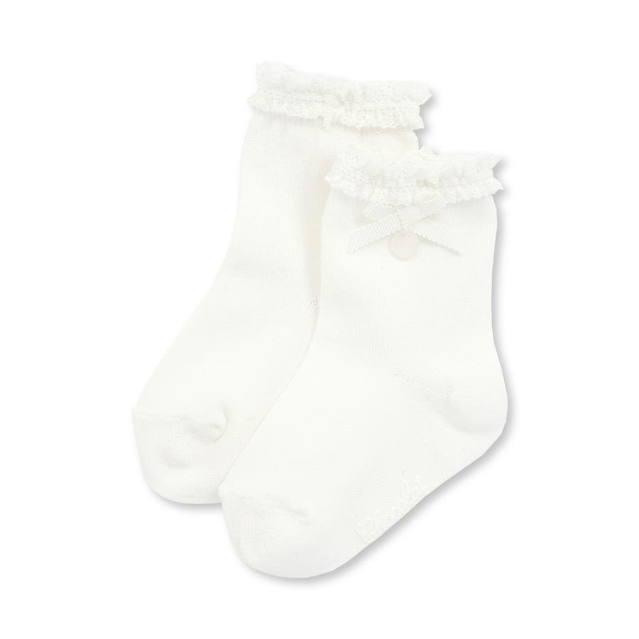 【日本製】【お揃い】コットンシルケットレースリボンソックスベビー(8~13cm)