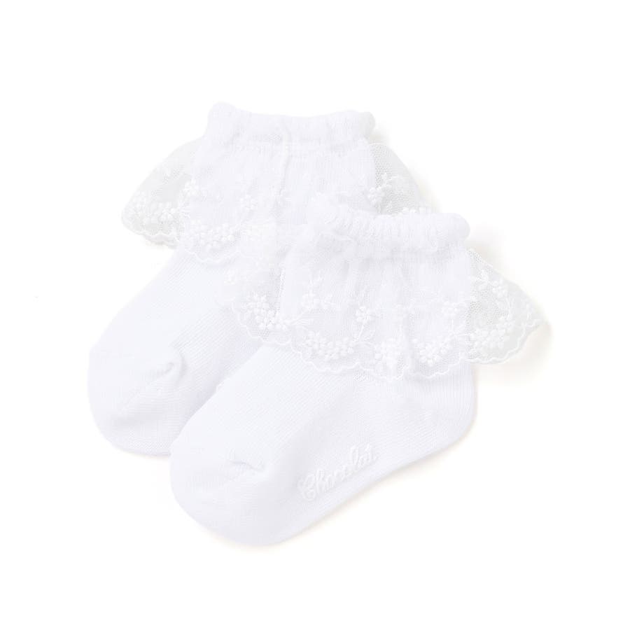 シンプルなチュールレースのベビー用ソックス。