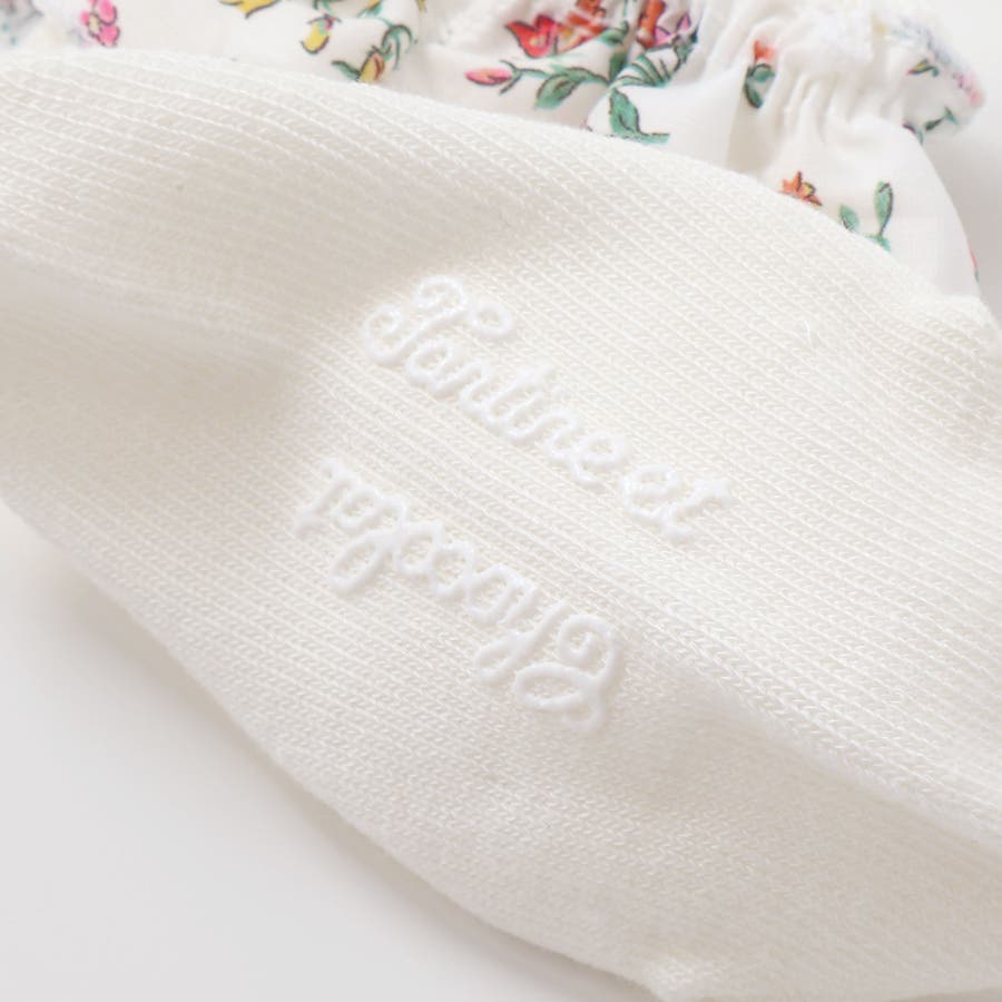 リバティ(BluebellFields) 柄をプリントした生地をフリル部分に使用したベビー用ショート丈ソックス。