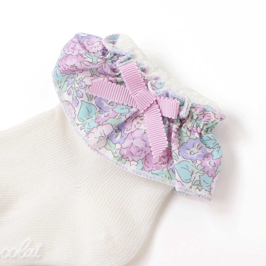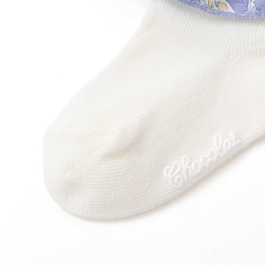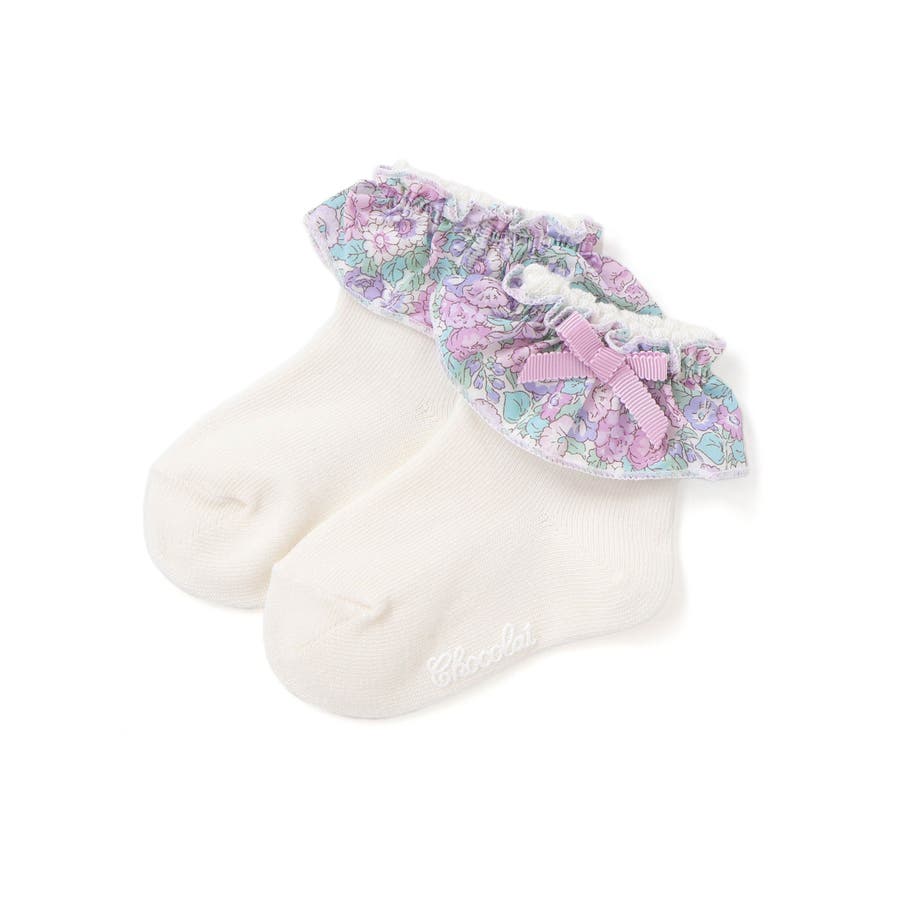 リバティプリントのお花柄がプリントされたフリルが映える女の子ベビー用ソックスです。