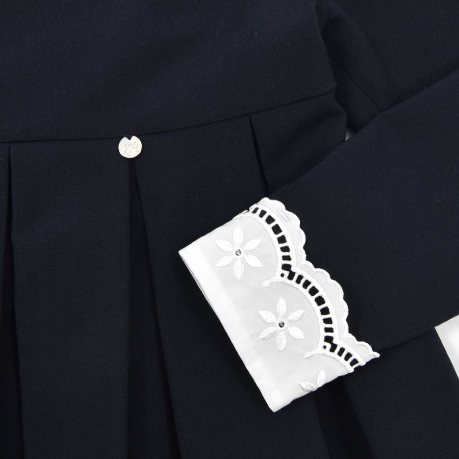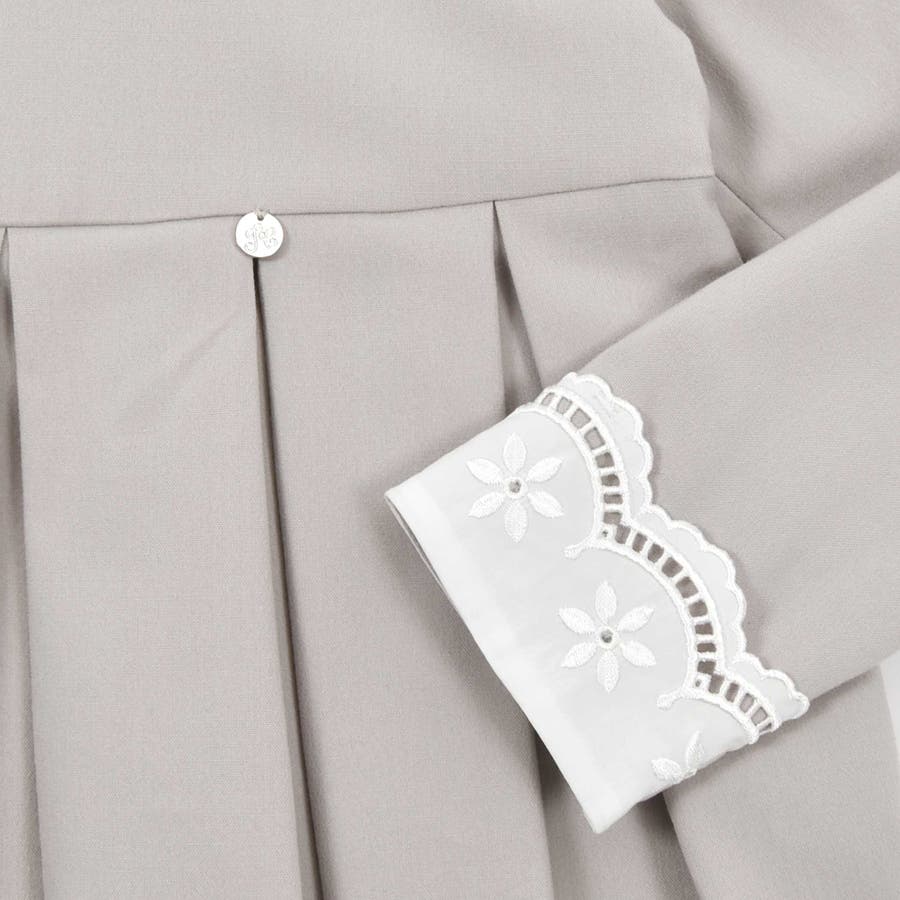 襟や袖口はタイプライター生地に花柄の刺しゅうが入って可愛いデザインに。