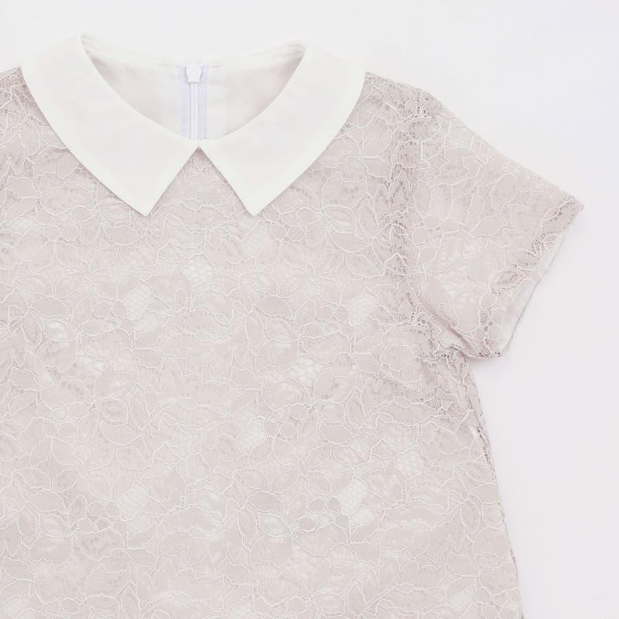 シンプルな白襟デザインに裾のスカラップが上品かつ可愛い印象に。