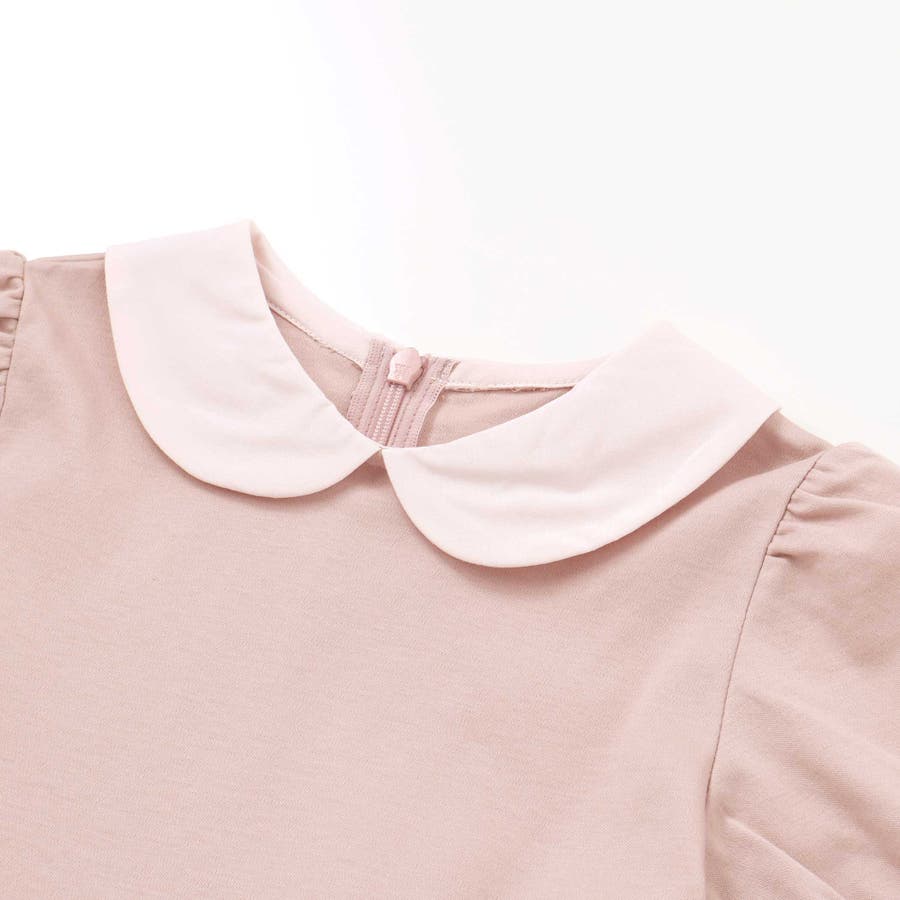 クラシカルな丸襟とウエストのグログランリボンで清楚感をプラス。