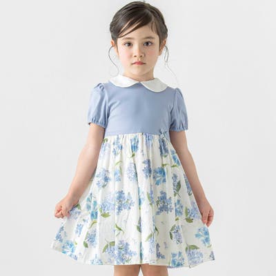 リバティMARINA S MEADOW丸襟半袖切り替えワンピース