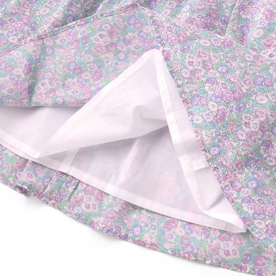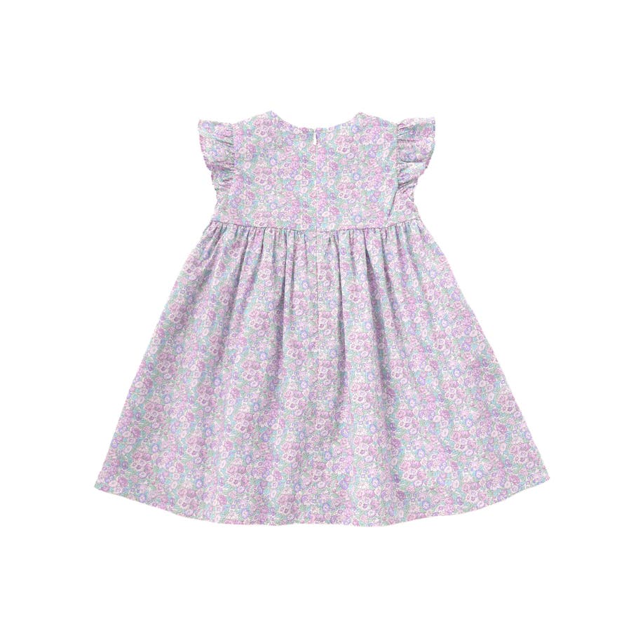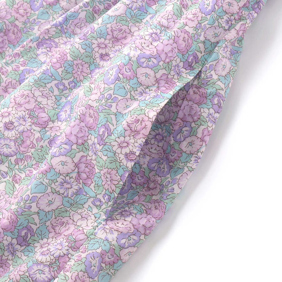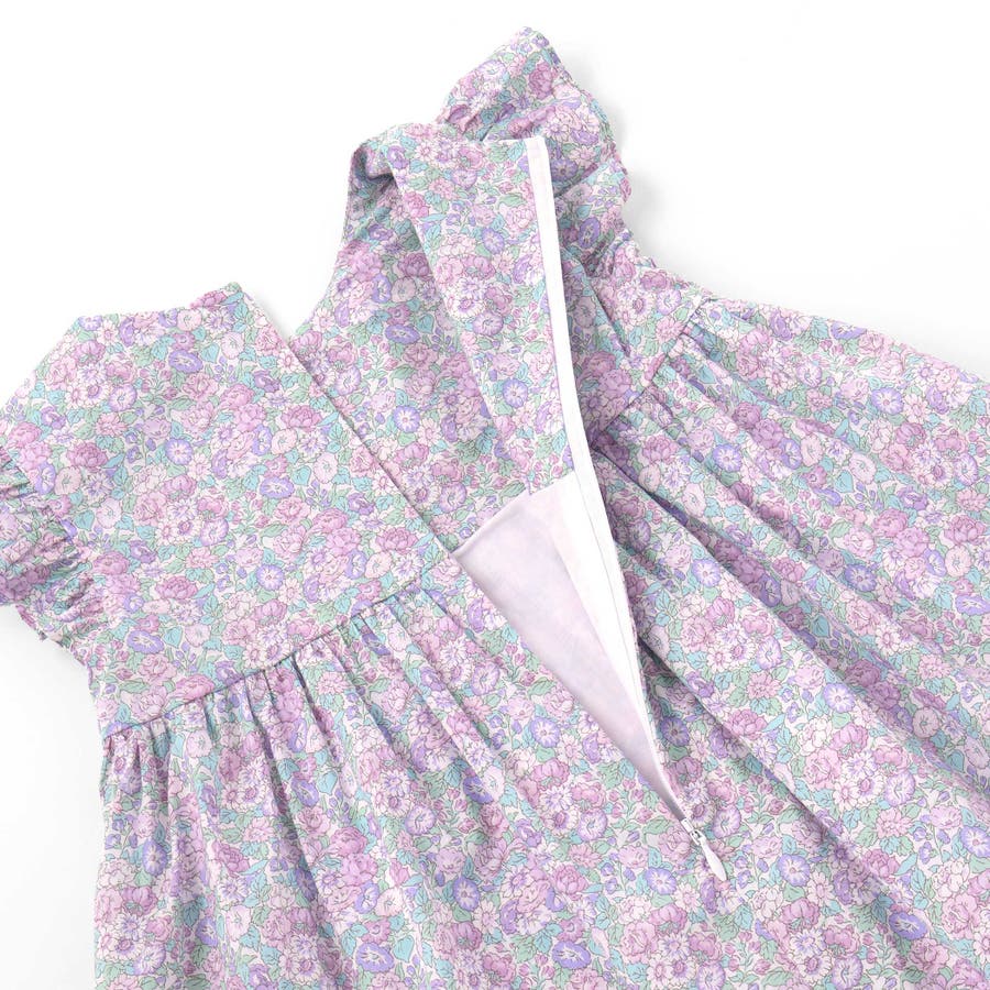 春夏らしさを感じるリバティプリントの小花柄の生地を使用し、袖のフリルとギャザーで裾に向かって広がるシルエットが美しいワンピースです。