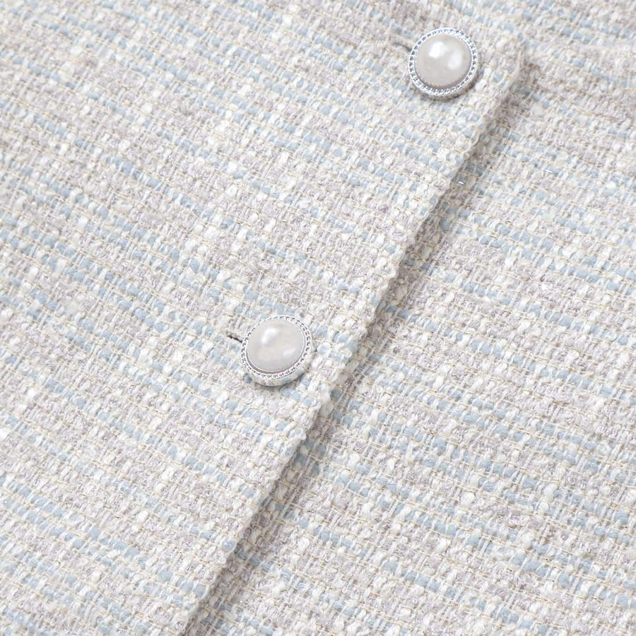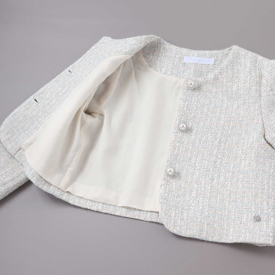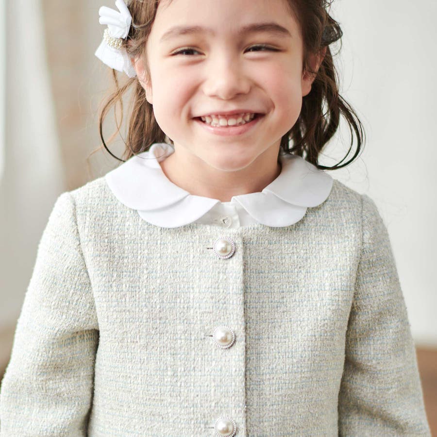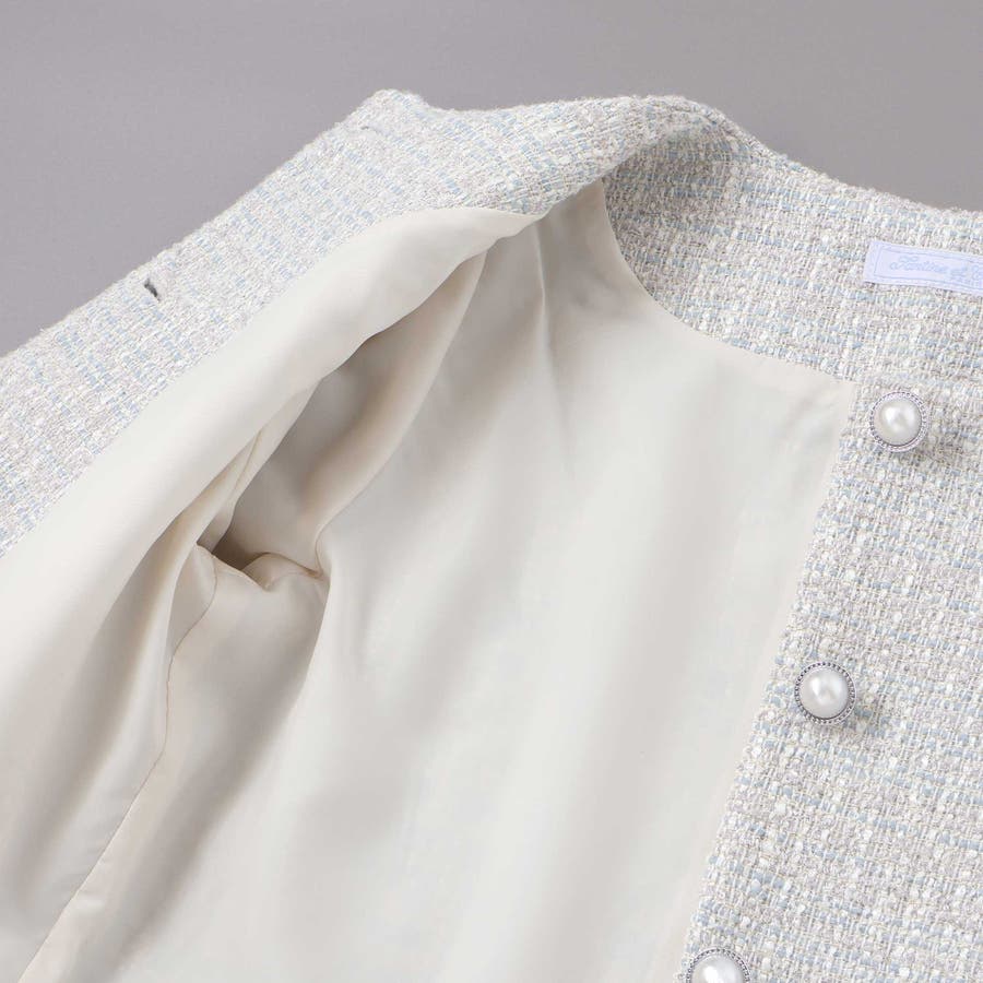 ジャケットは前開きのボタン仕様で、華やかなパールボタンできちんと感を演出しながら着脱もスムーズ。