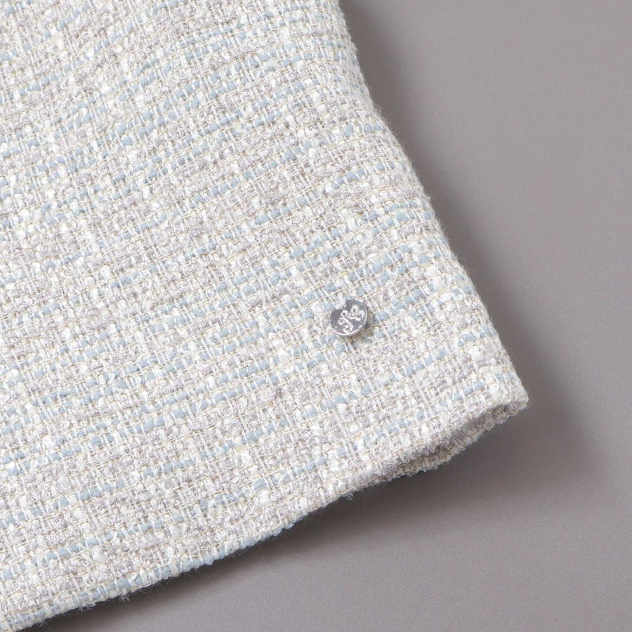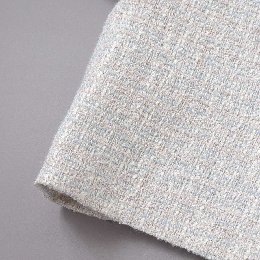 淡いベージュのベースにやわらかなブルー系の糸がMIXされた優しい色合いです。