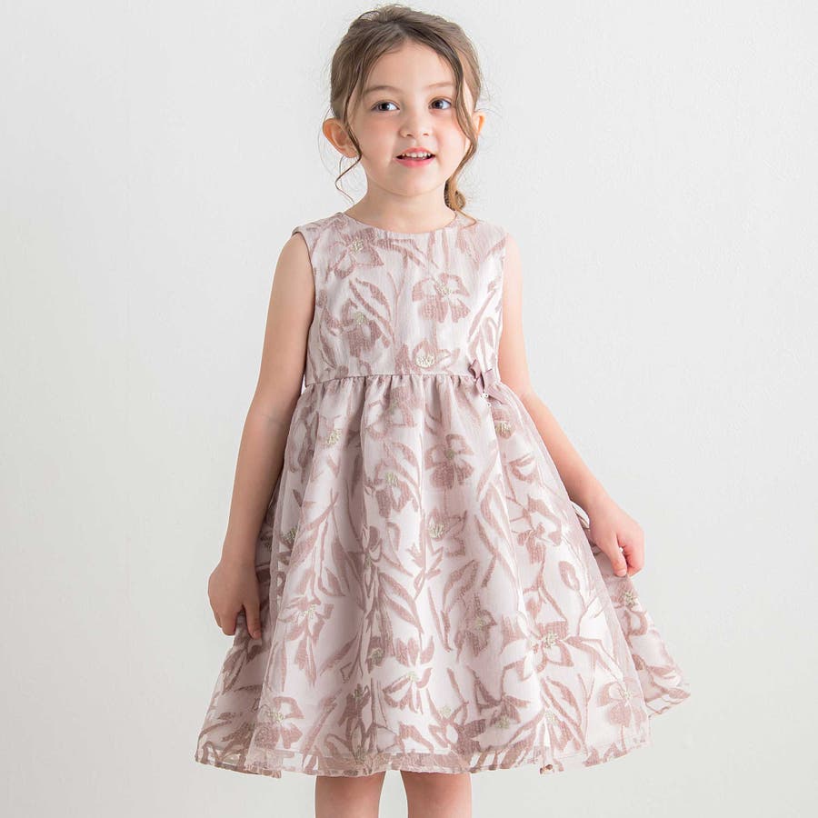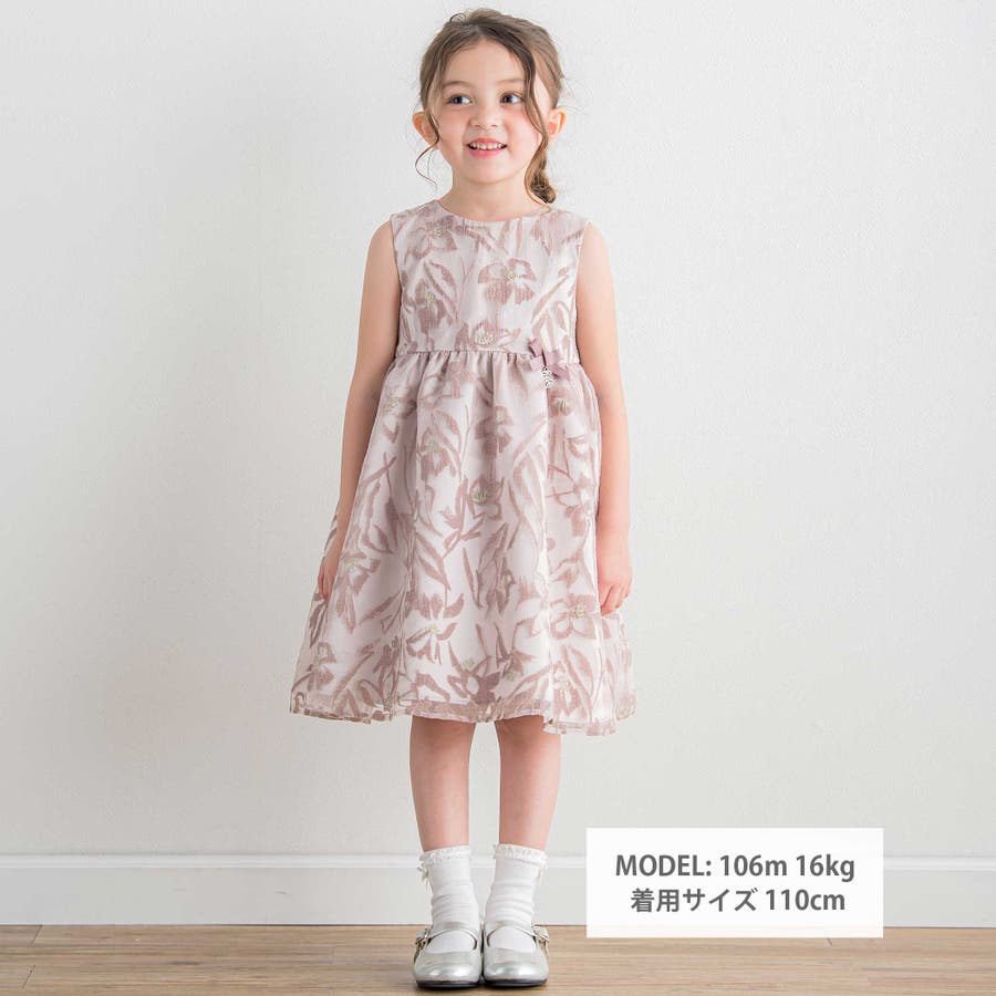 【日本製】ワッシャーオーガンジーフロッキープリントワンピース(100~140cm…