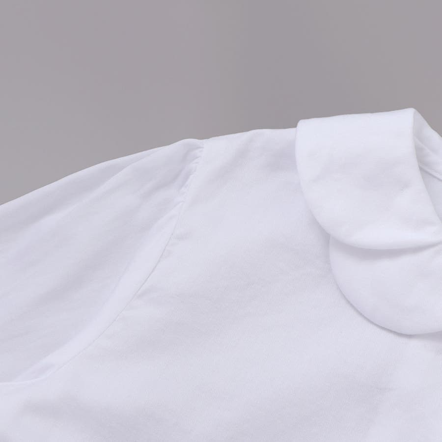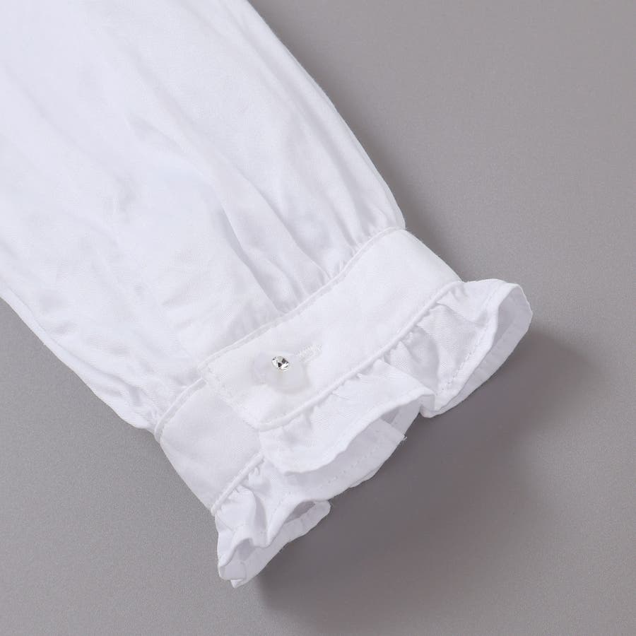 袖口にはカフスの先にフリルをあしらい、女の子らしい可愛らしさをプラス。