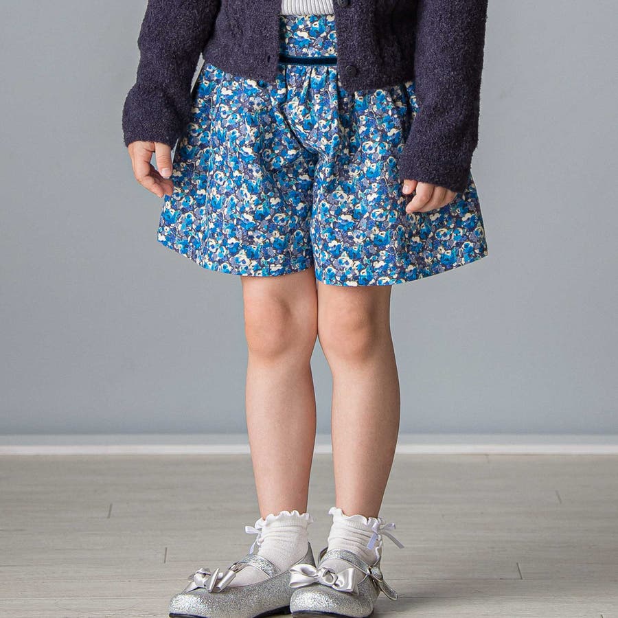 柔らかなシャツコール生地に、リバティ(Leila)柄をあしらった女の子用キュロット。