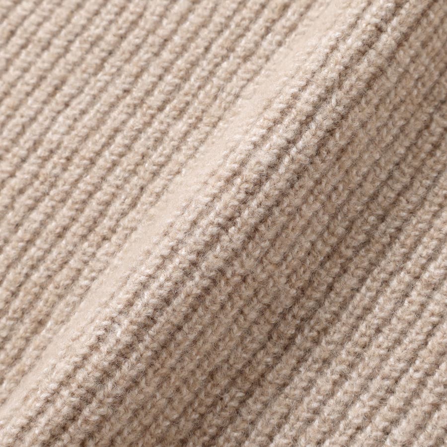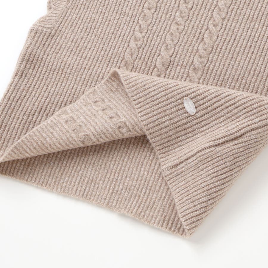 フロント部分に縄編みをあしらい、シンプルながらもコーデのアクセントになります。