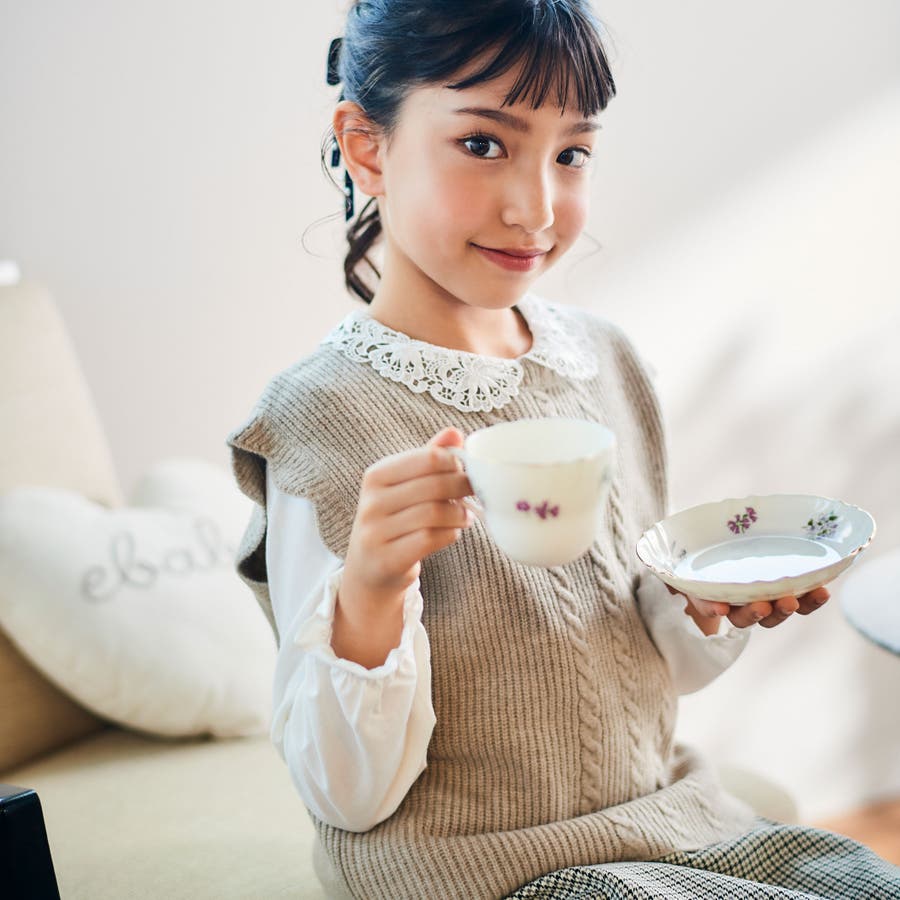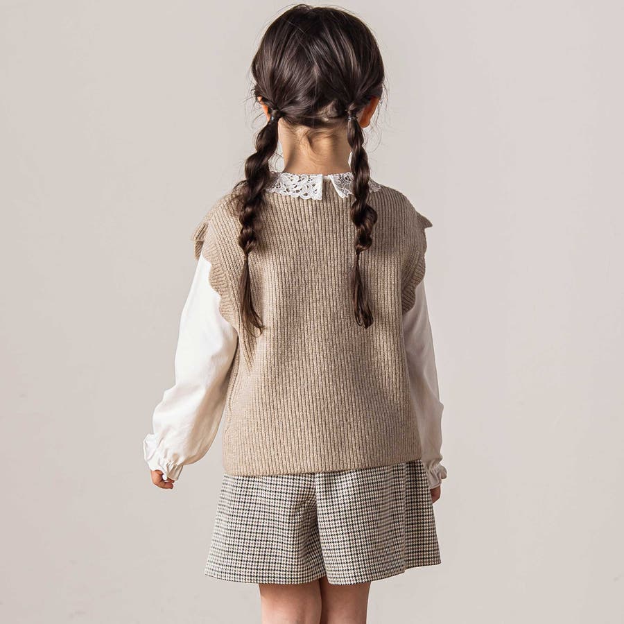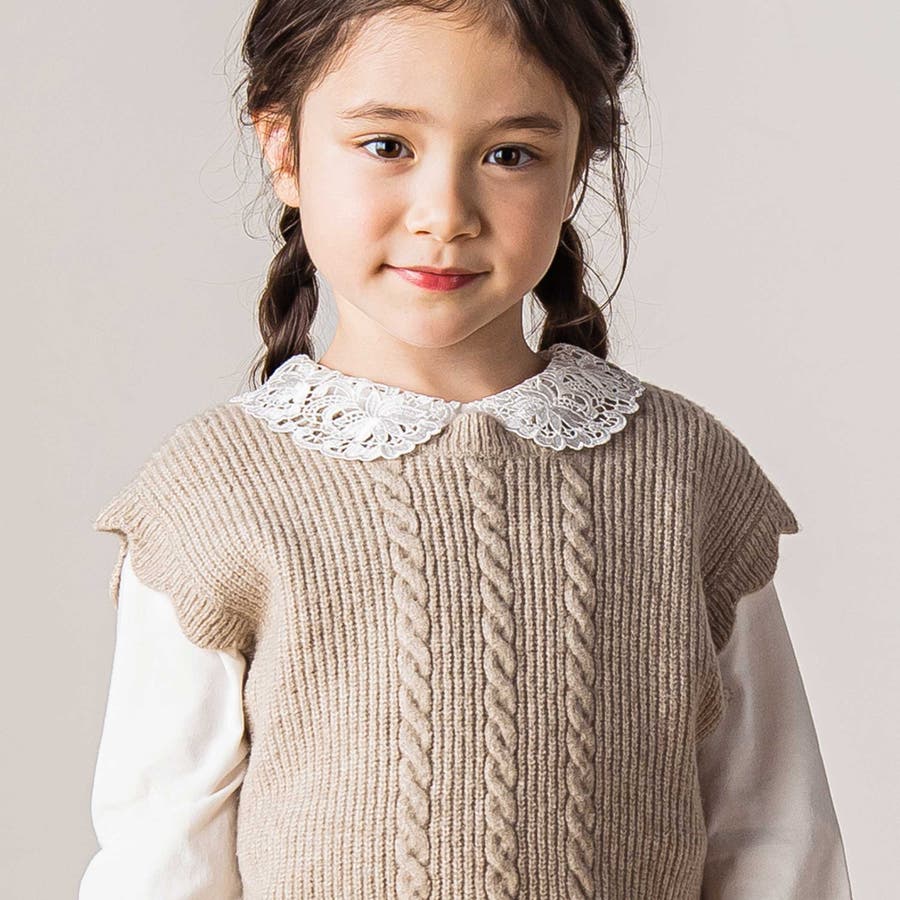 温かみのある秋冬らしいカラーの女の子用ニットベスト。