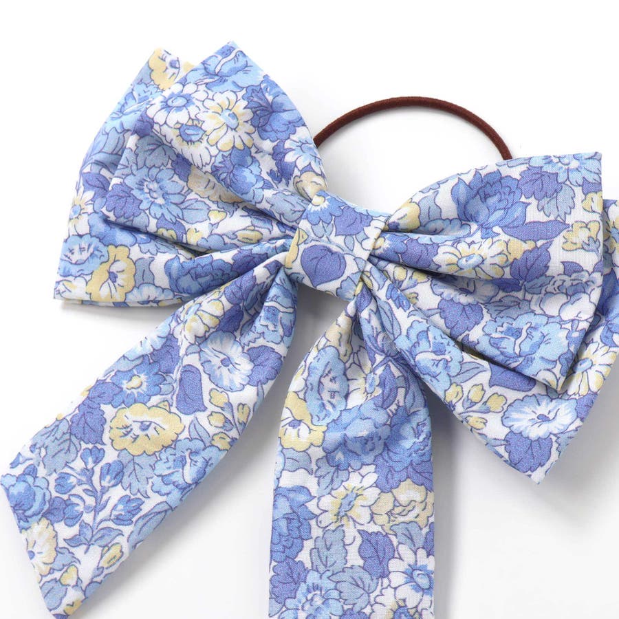 リバティの小花柄とリボンのデザインが上品で可愛らしく、髪をこのゴムでまとめるだけで簡単に華やかでキュートなヘアスタイルに◎
