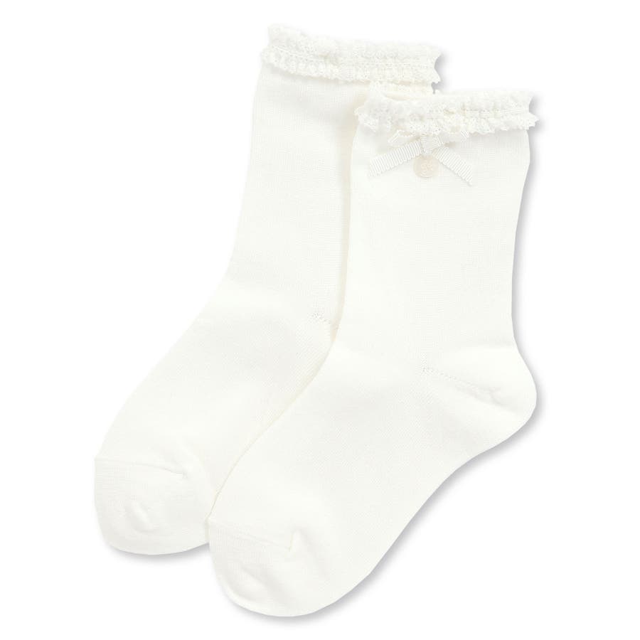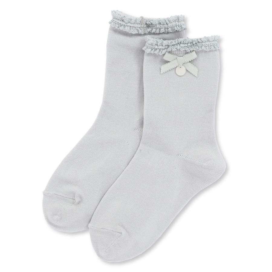 【日本製】【お揃い】コットンシルケットレースリボンソックス(13~21cm)