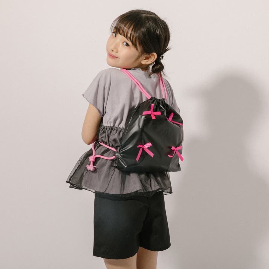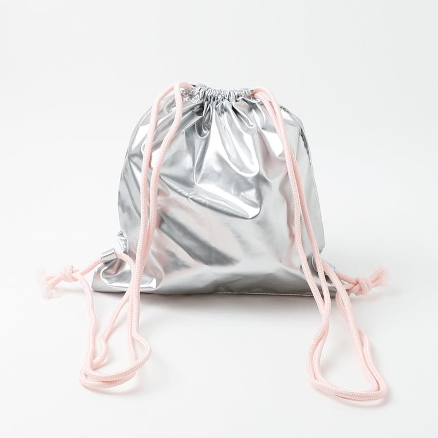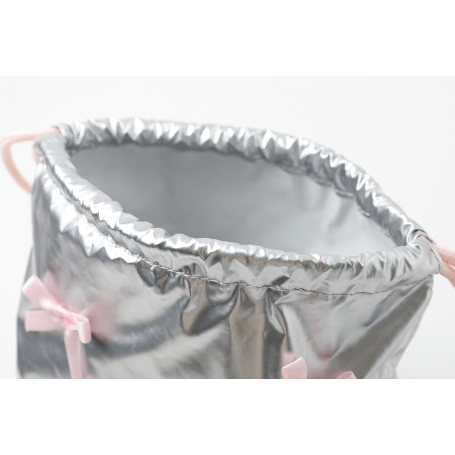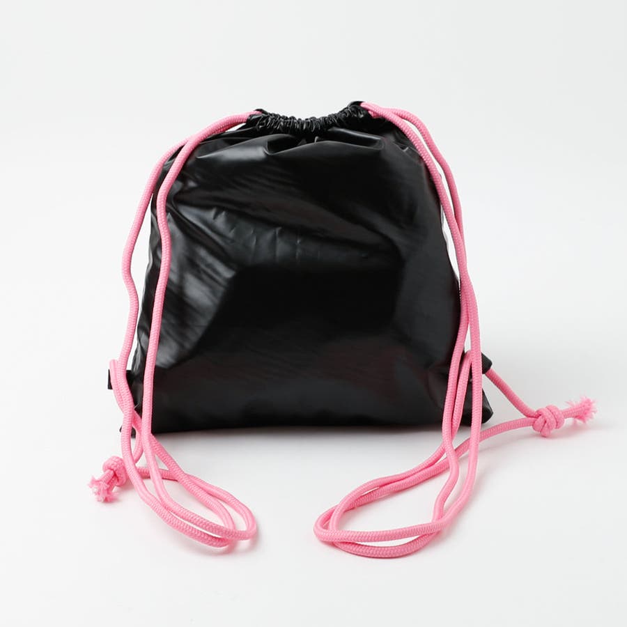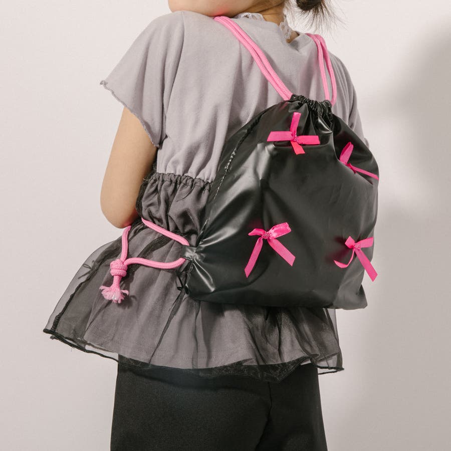 光沢感のあるナイロン素材とリボンデザインが可愛いナップサックは