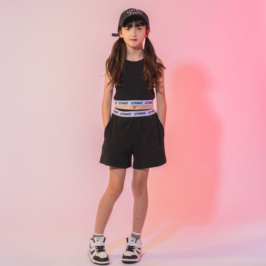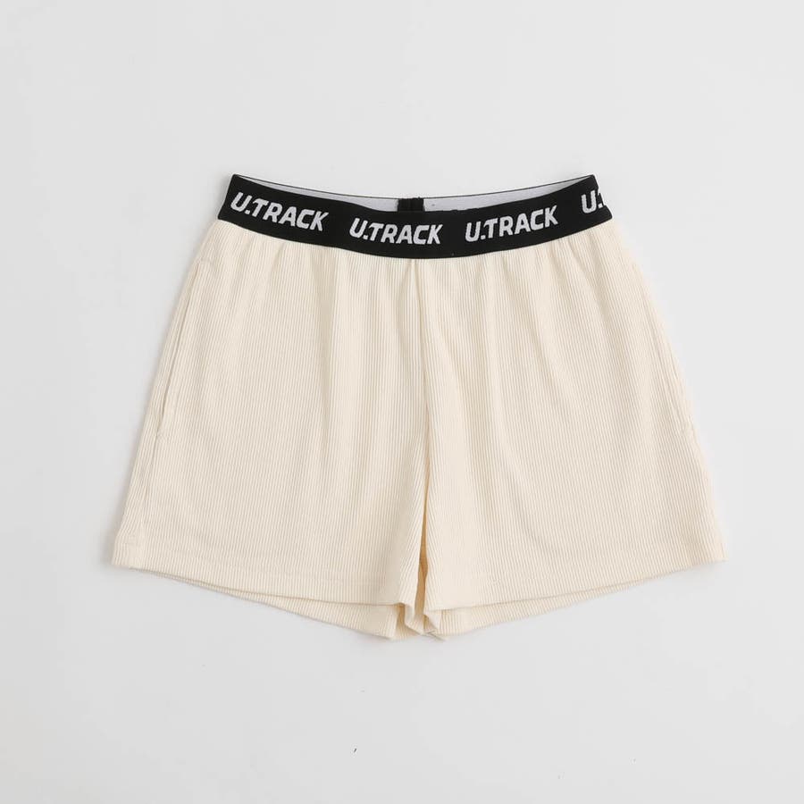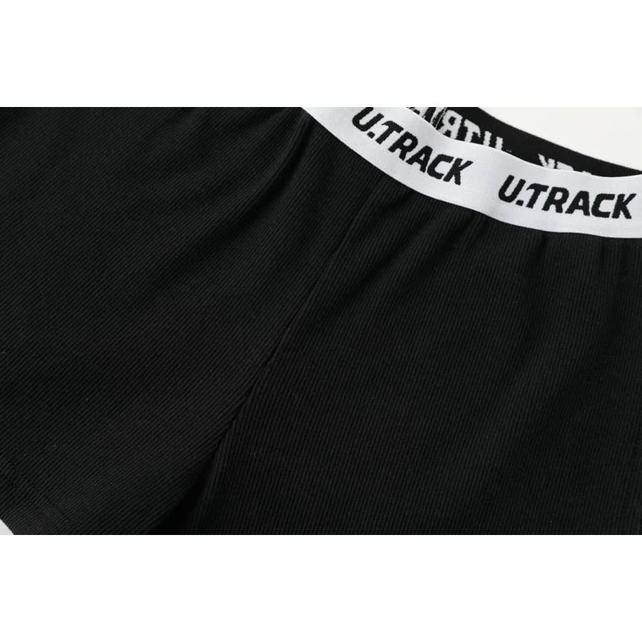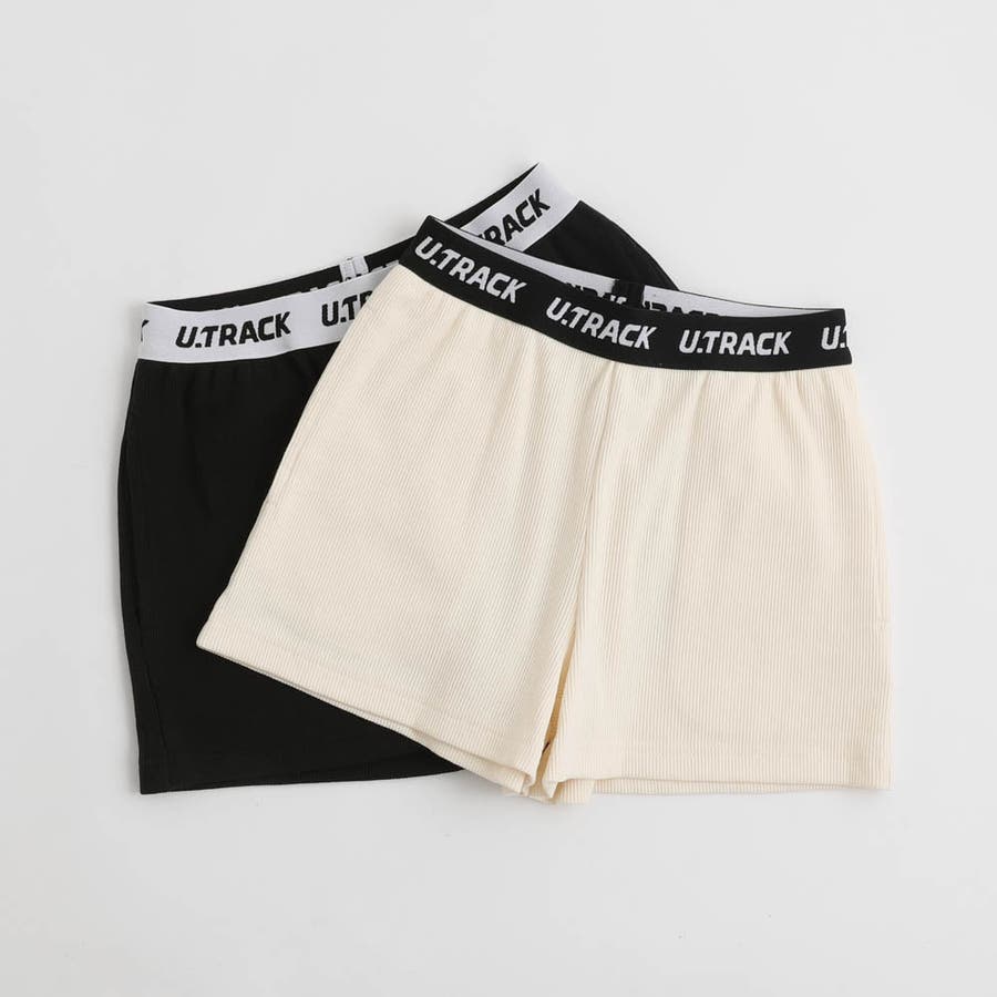 【U.TRACK】ロゴテープデザインリブショートパンツ