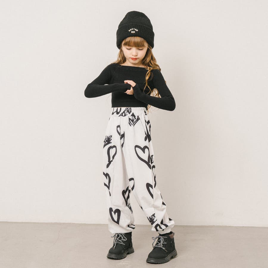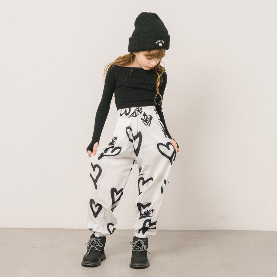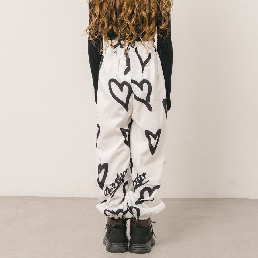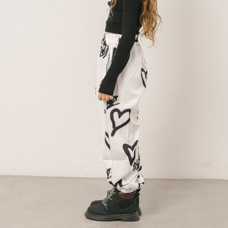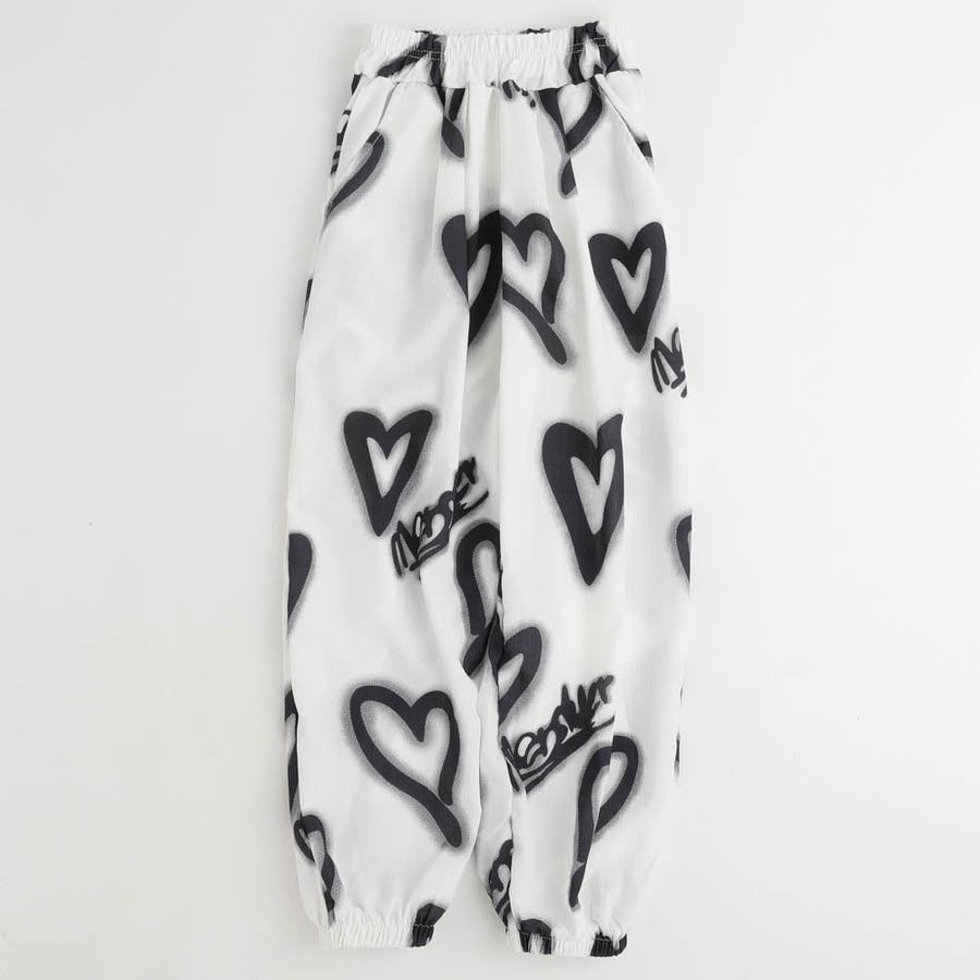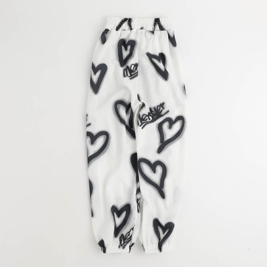 スプレー風のハートプリントがコーデに抜け感を与える、リラクシーな印象のジョガーパンツ。