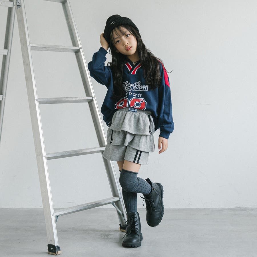 トレーナーやロンTを合わせてカジュアルに、ロゴトップスと合わせて韓国っぽストリートもおすすめ。