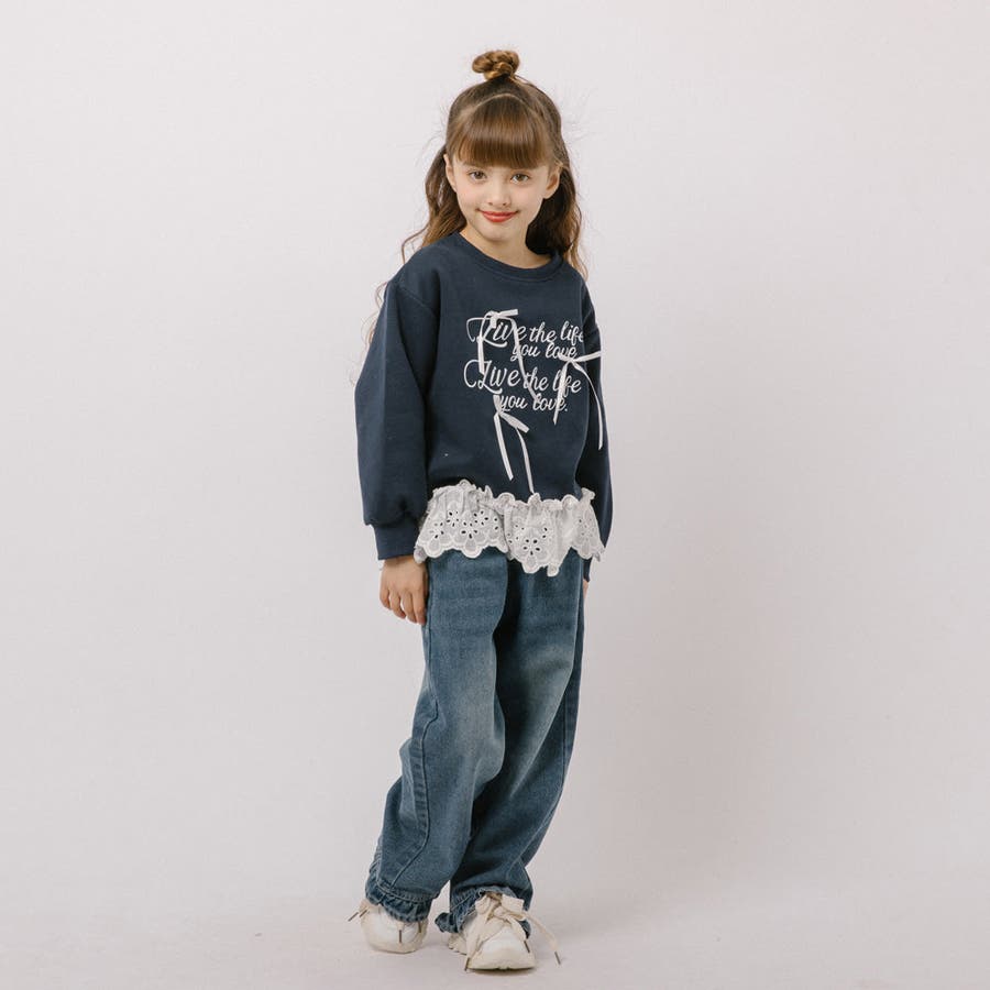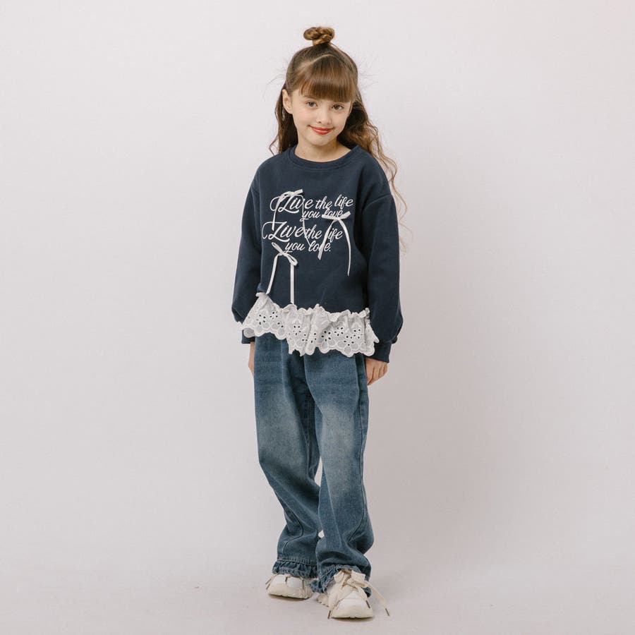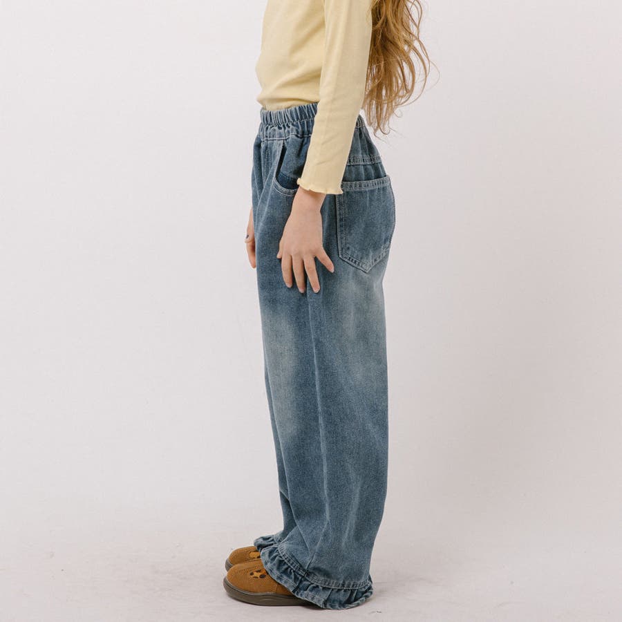 フリルルーズストレートデニムパンツ