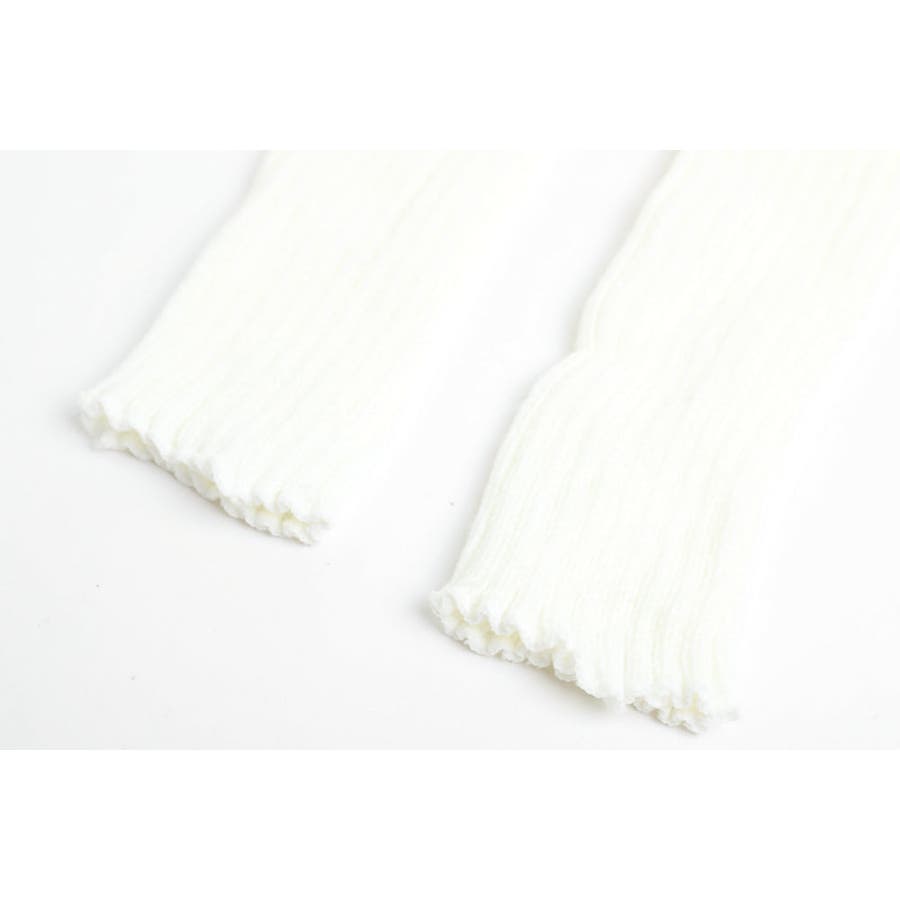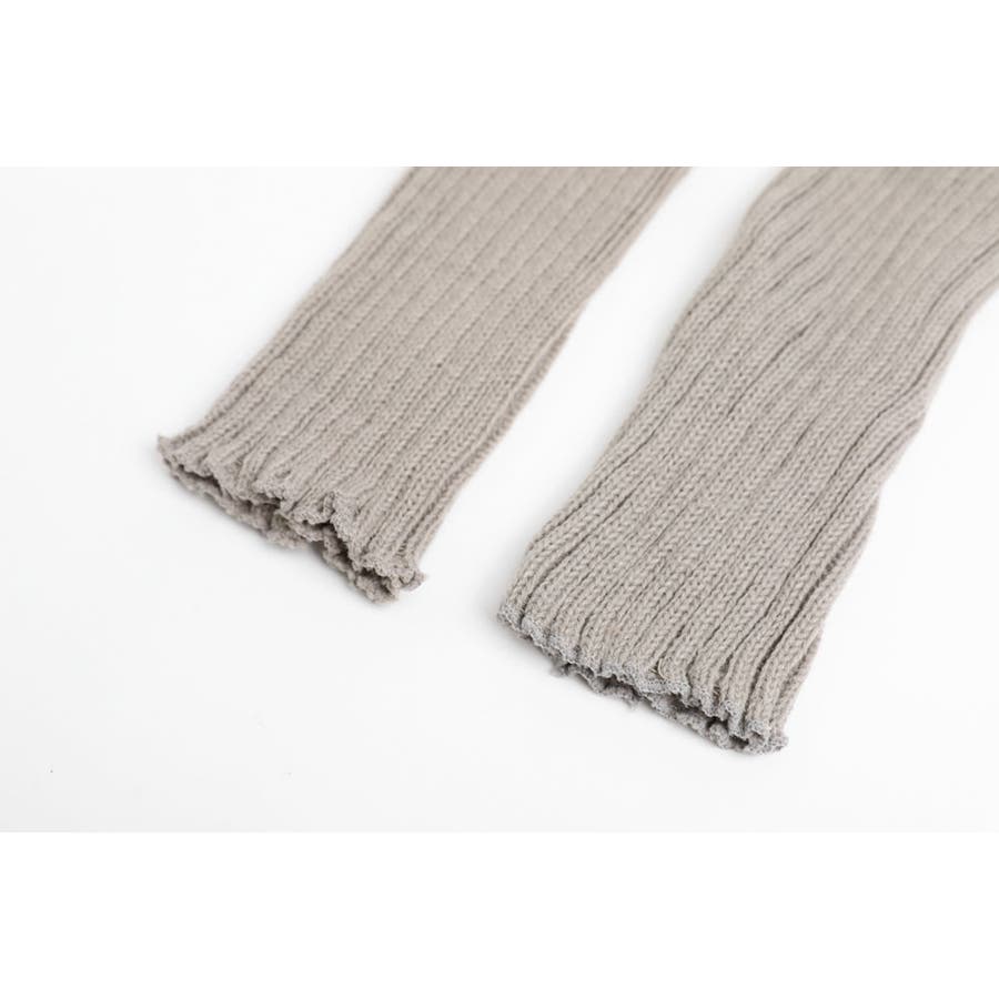 柔らかくチクチクしないリブ二ットを使用し、膝下で留まるリブデザインになっており履く位置を調節していただけます。
