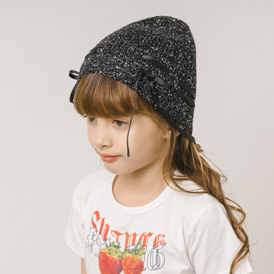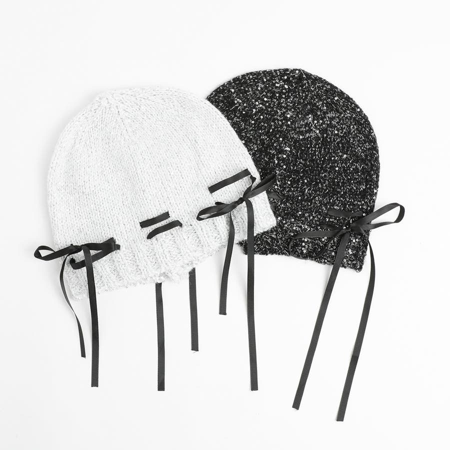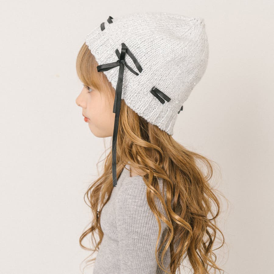 リボンデザインラメビーニー