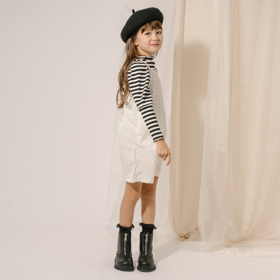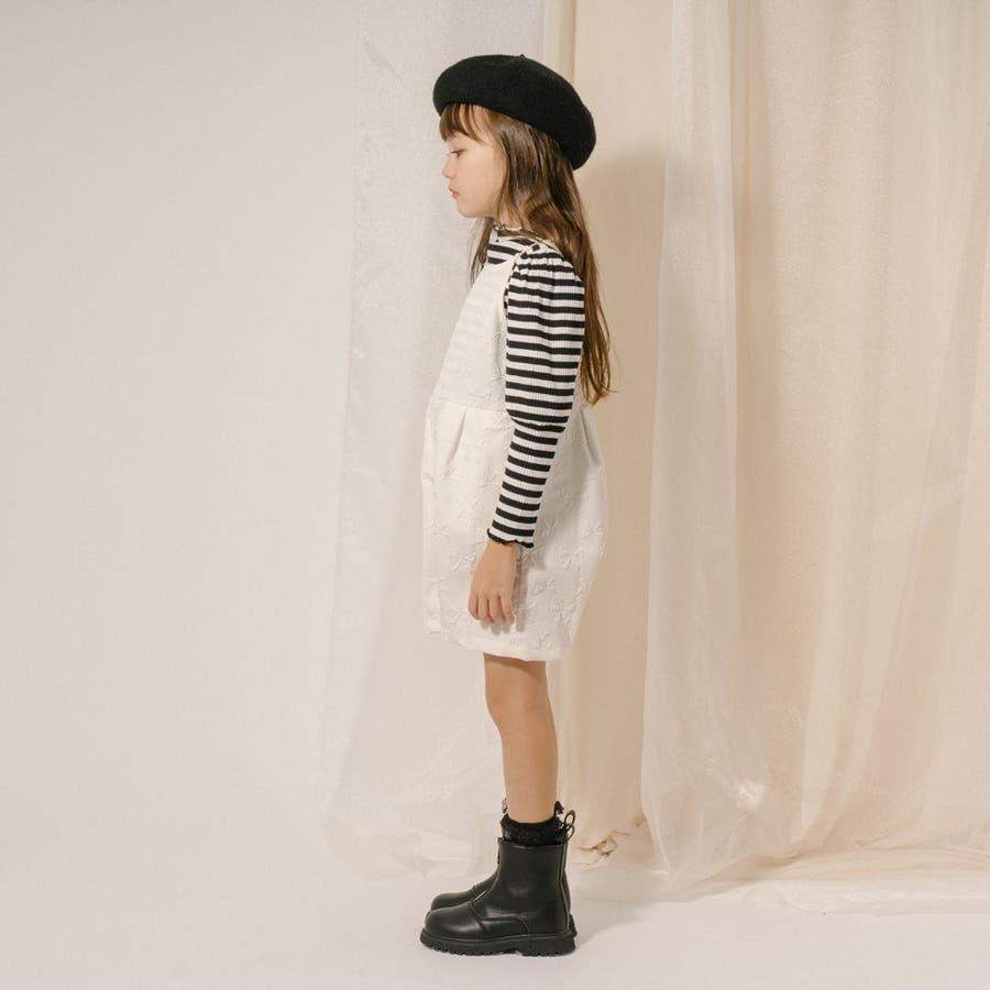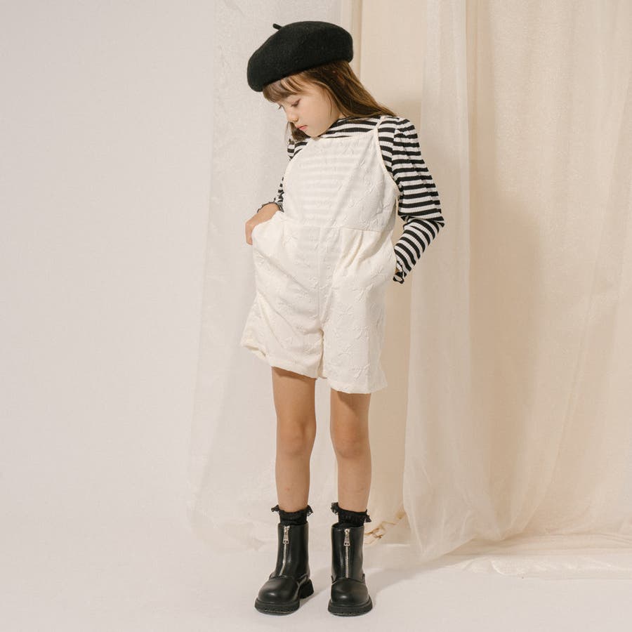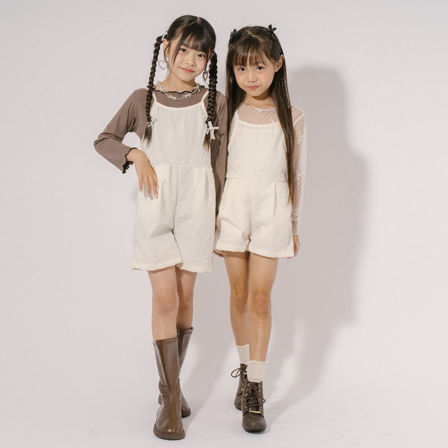 リボン柄の甘め素材とシンプルなデザインでオトナっぽく 1枚でコーディネートが決まるオールインワンアイテム。 夏はインナーにキャミソールを合わせて、肌寒い時期にはシアートップスやタートルインナーを合わせることで、 ロングシーズン着回しを楽しむことが出来ます。 肩紐部分にアジャスターが付いているのでお好みの長さに調節して着用していただけます。