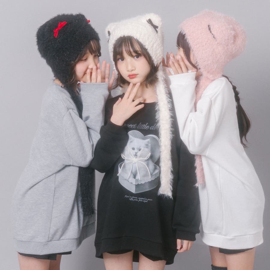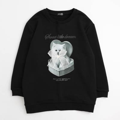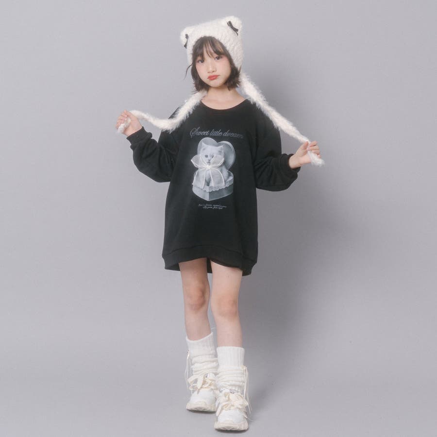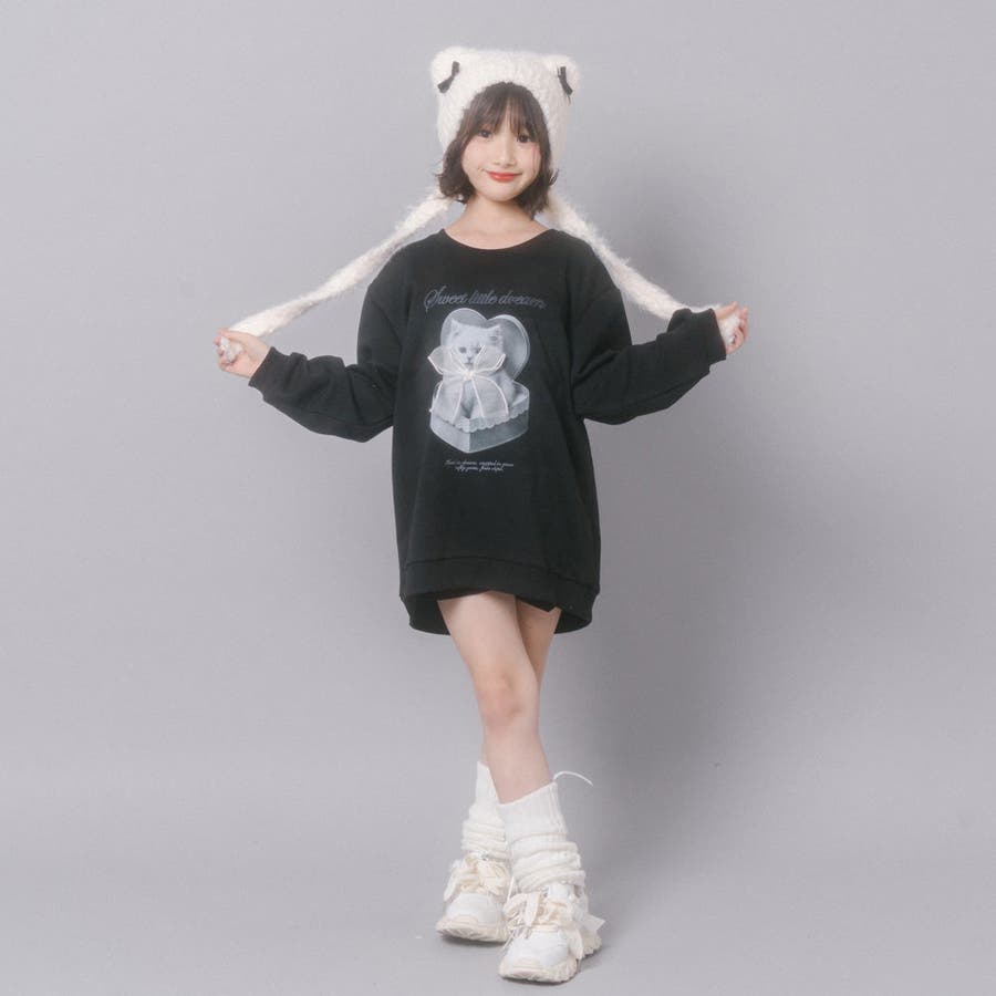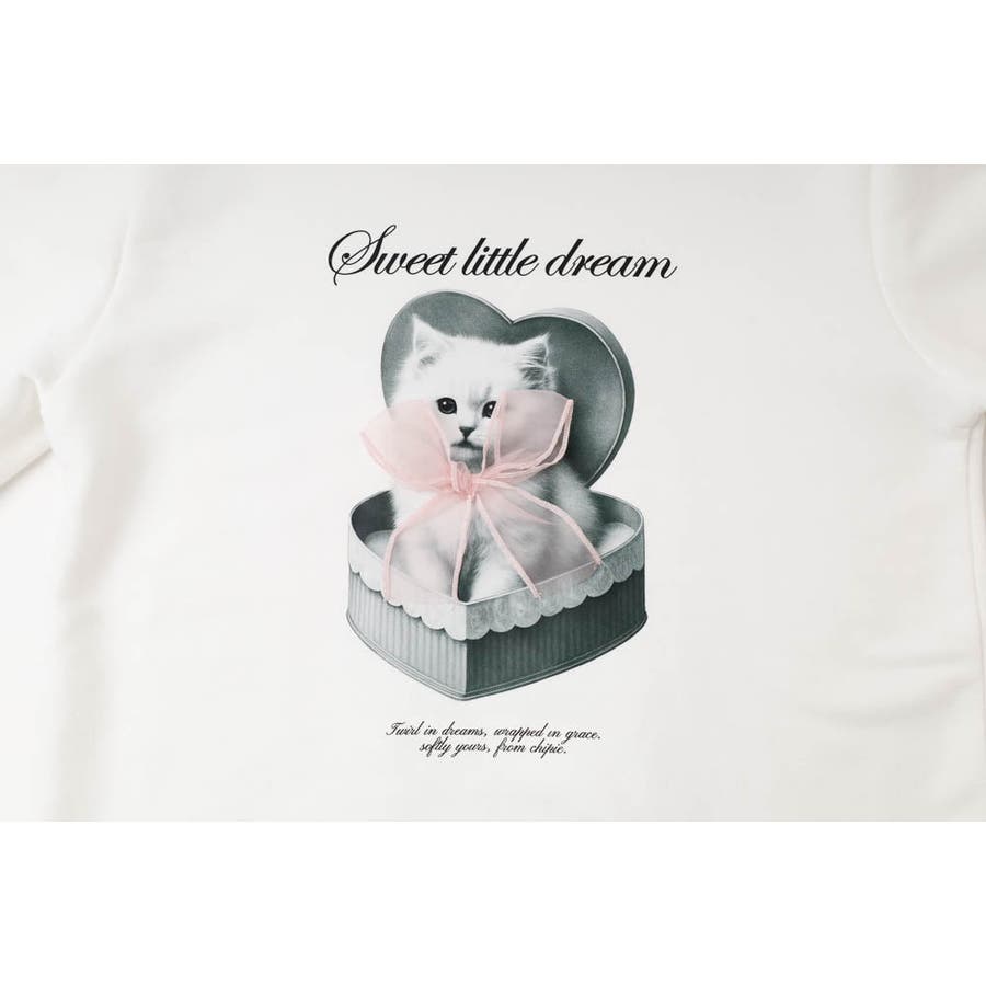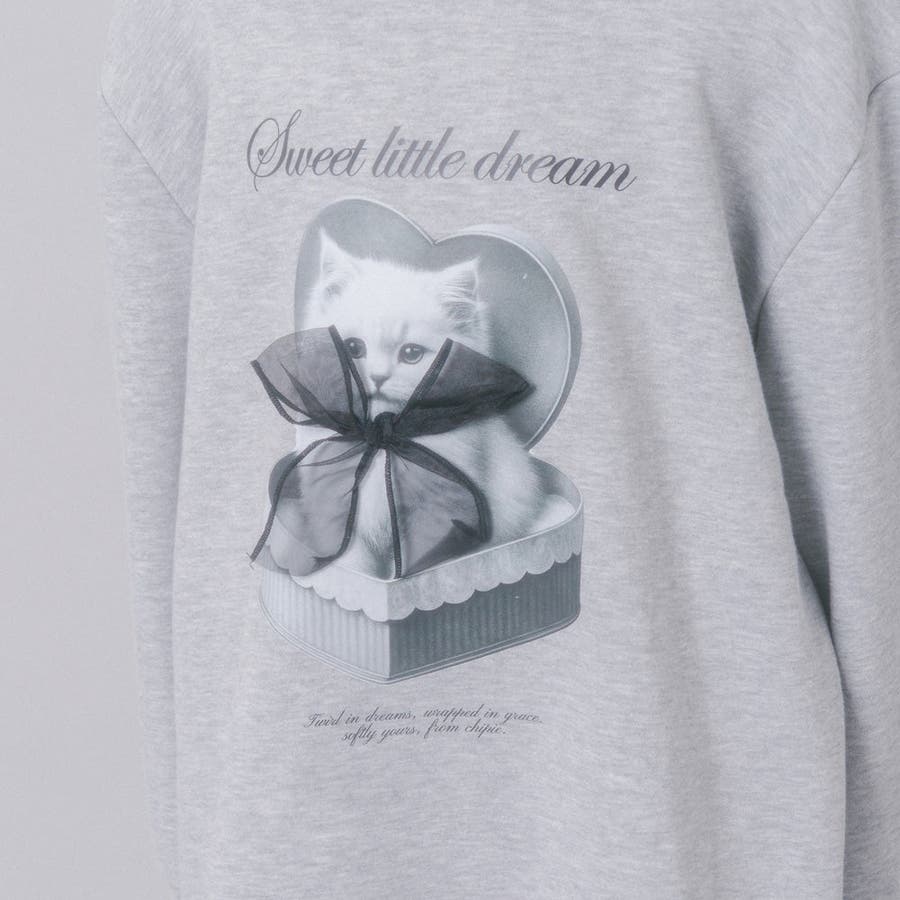 【CHIPIE/シピ】オーバーサイズシアーリボンキャットプリントミニワンピース