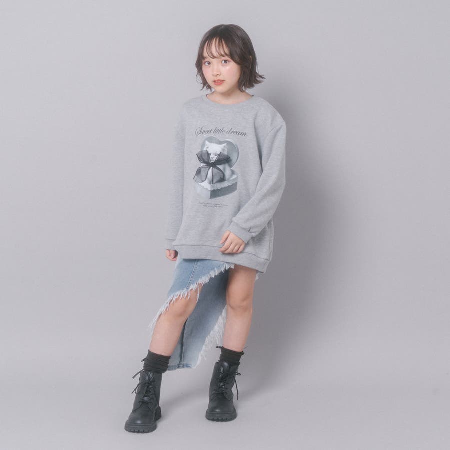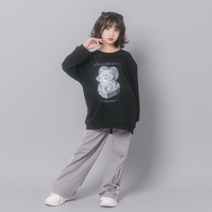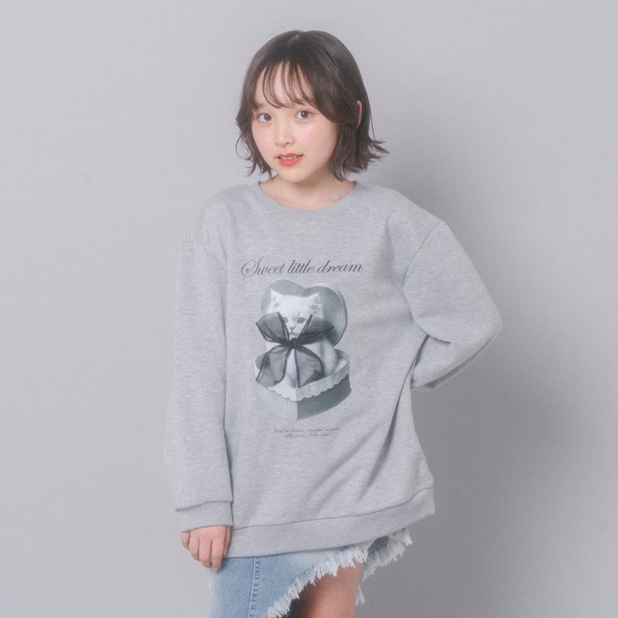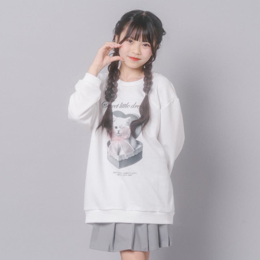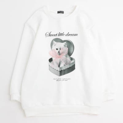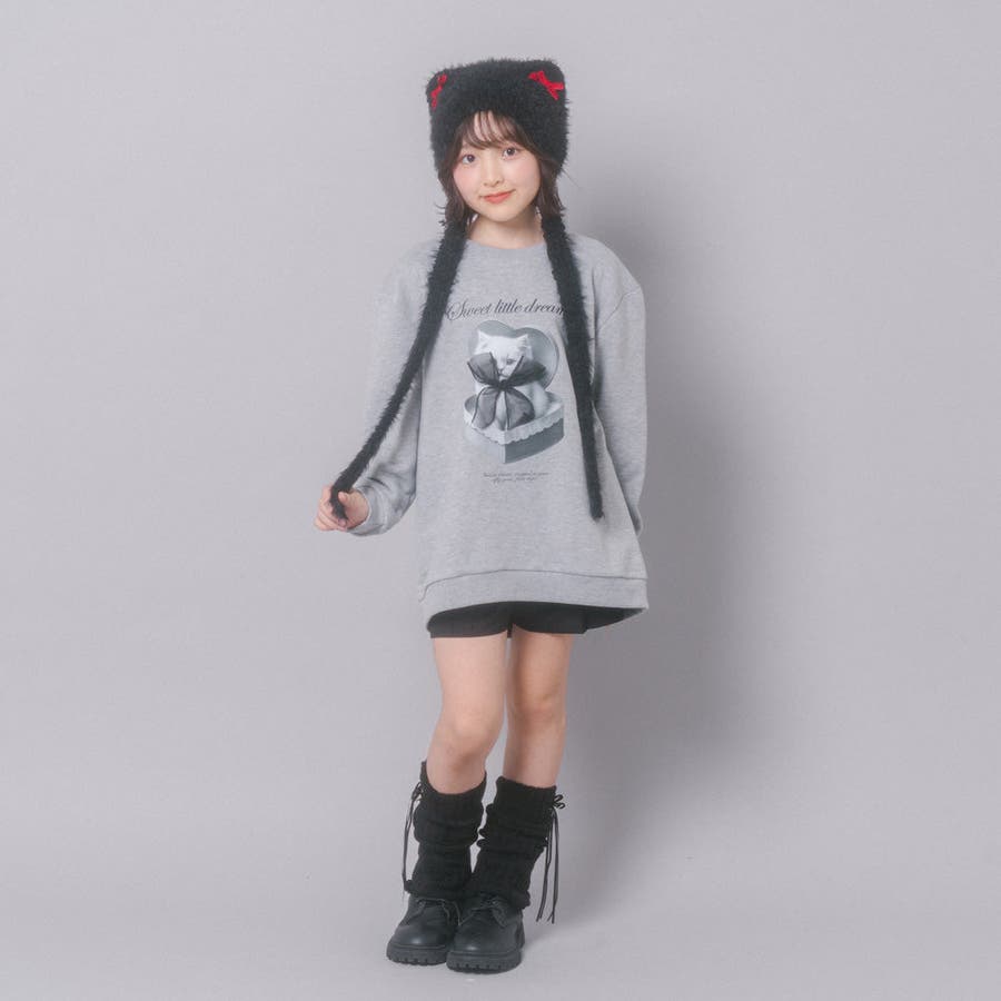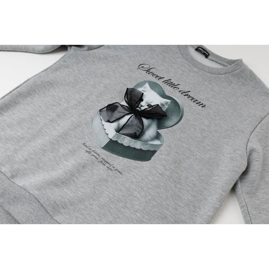 【CHIPIE/シピ】オーバーサイズシアーリボンキャットプリントミニワンピース