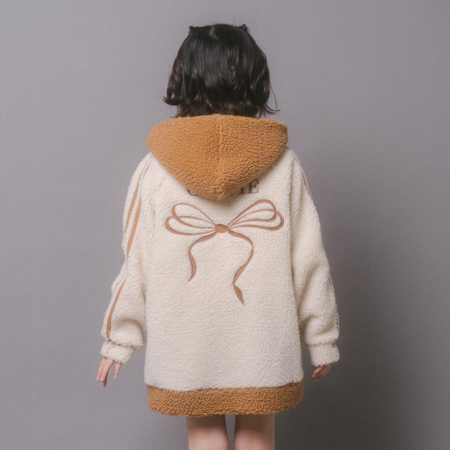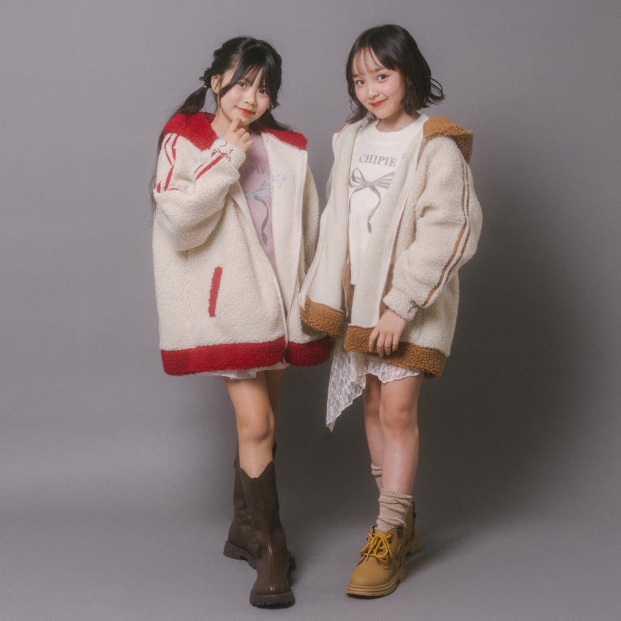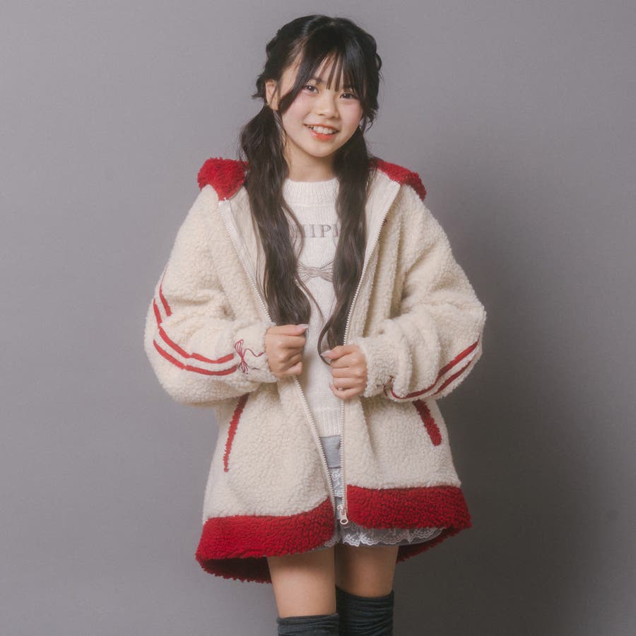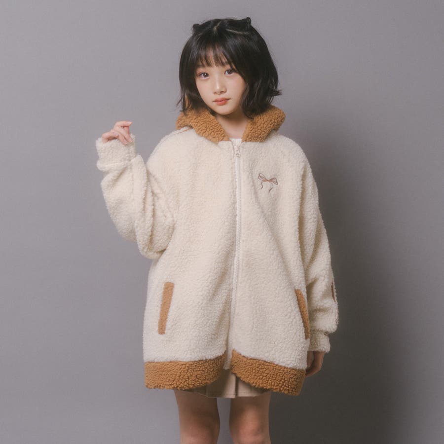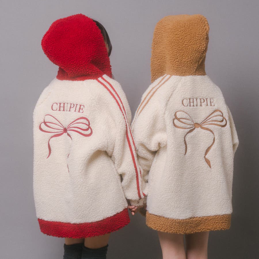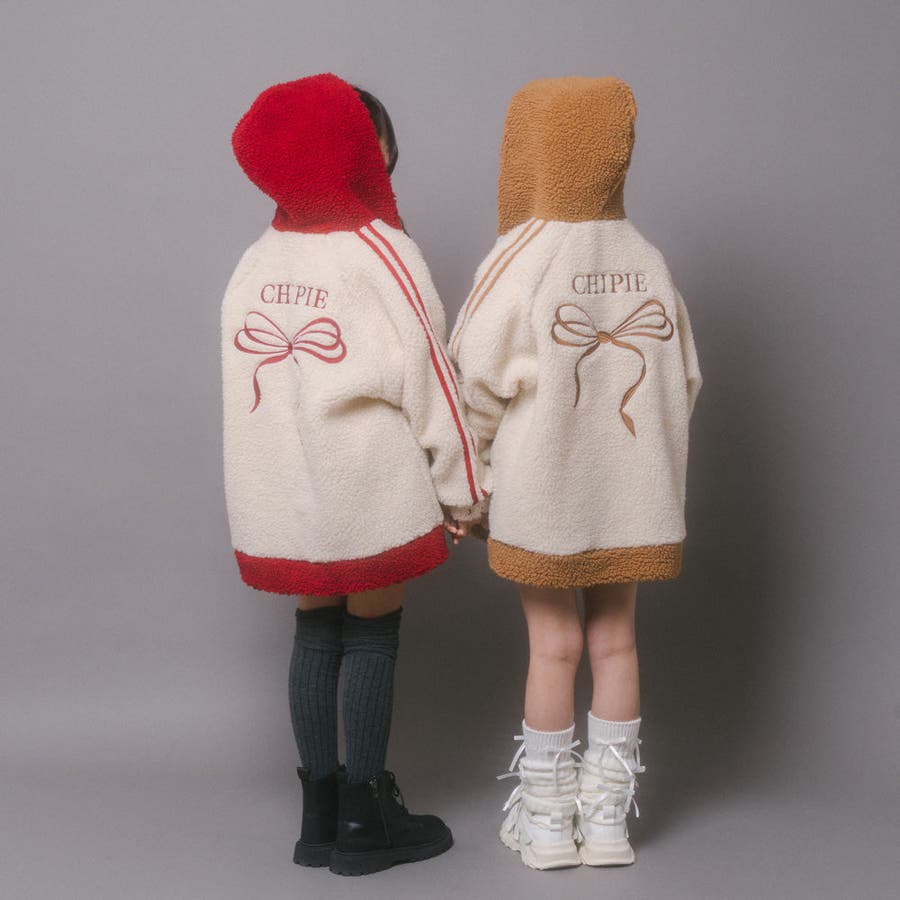 ラインとCHIPIEのリボン×ロゴ刺繍がポイントのボアジャケット。