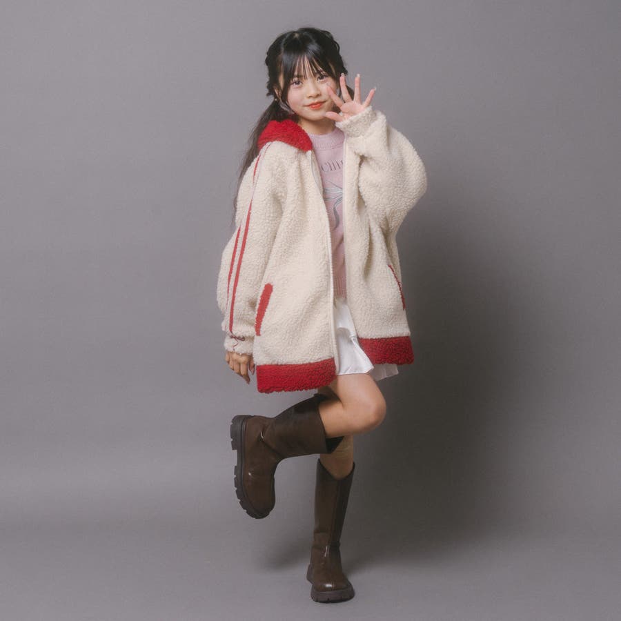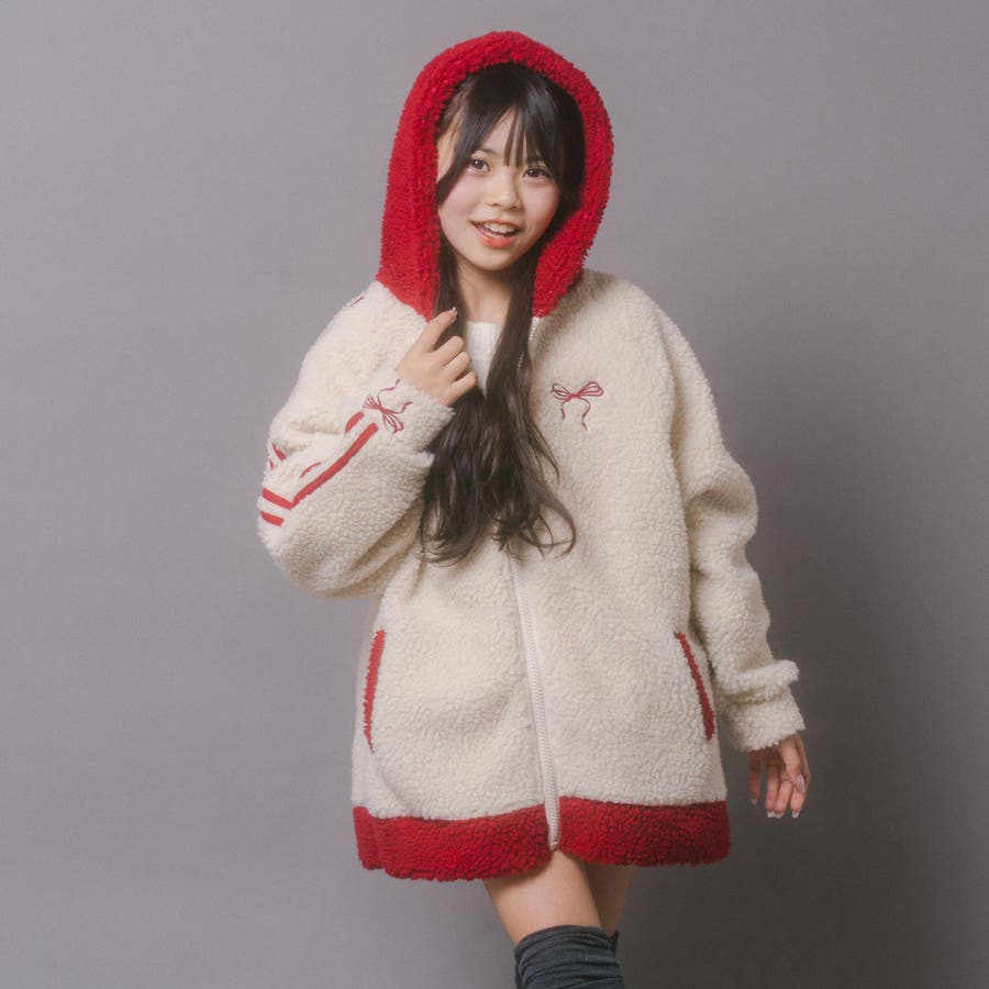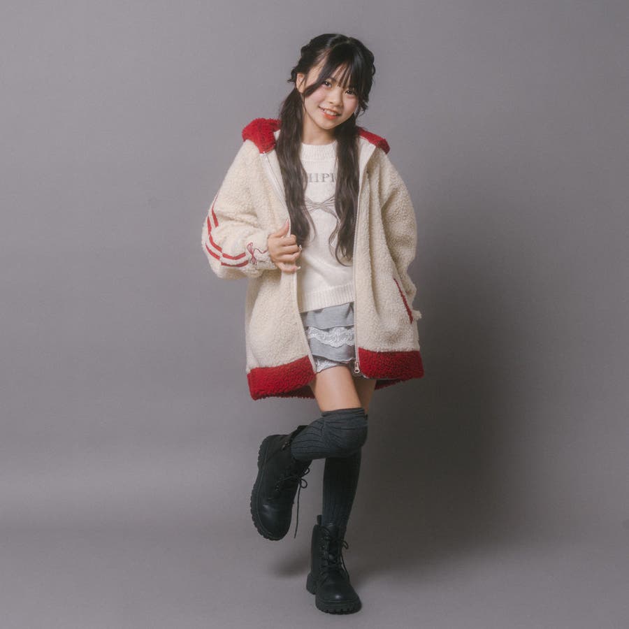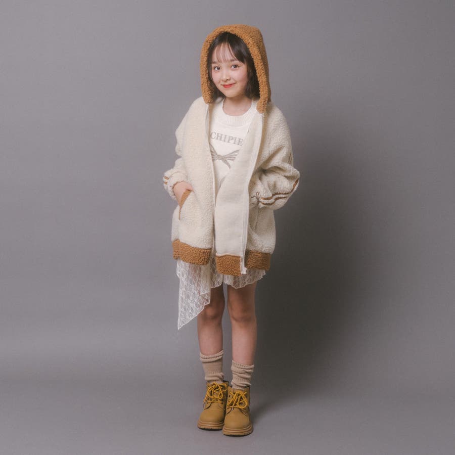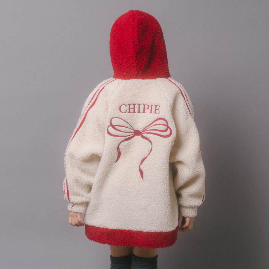 ラインとCHIPIEのリボン×ロゴ刺繍がポイントのボアジャケット。