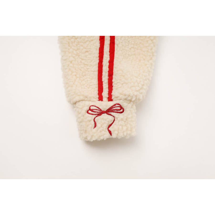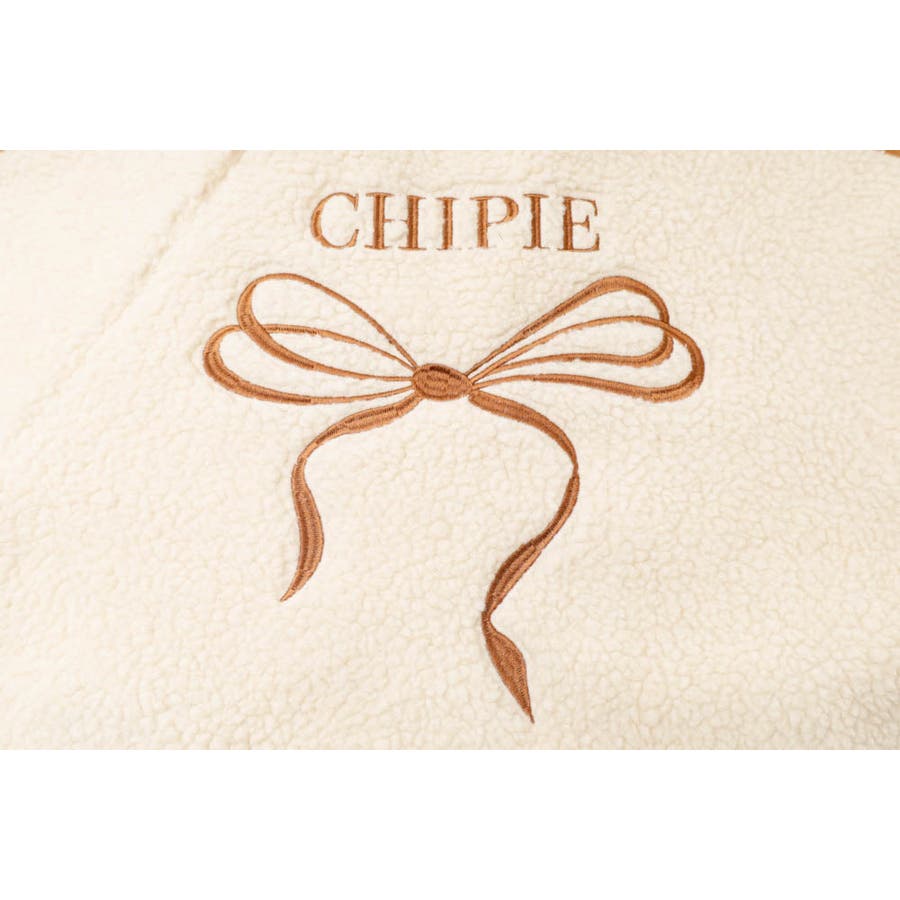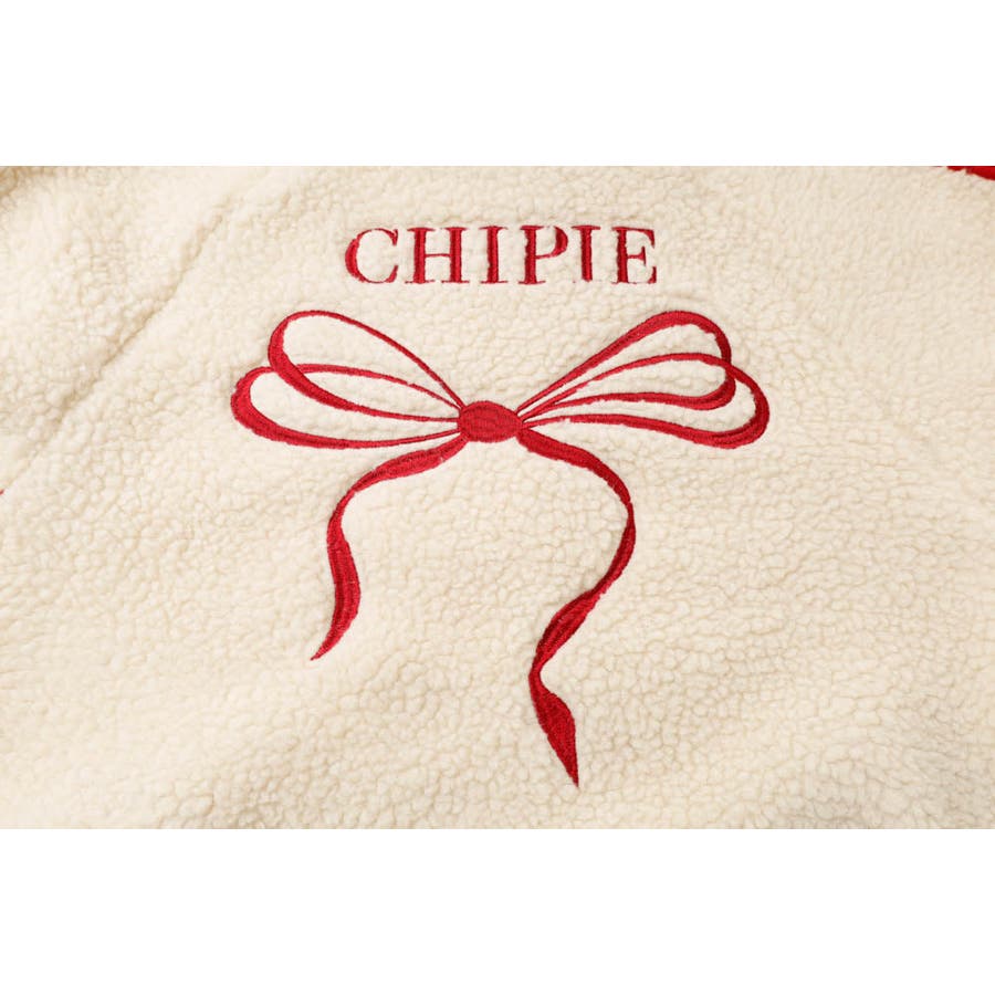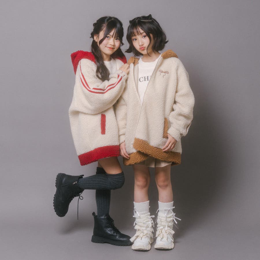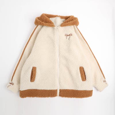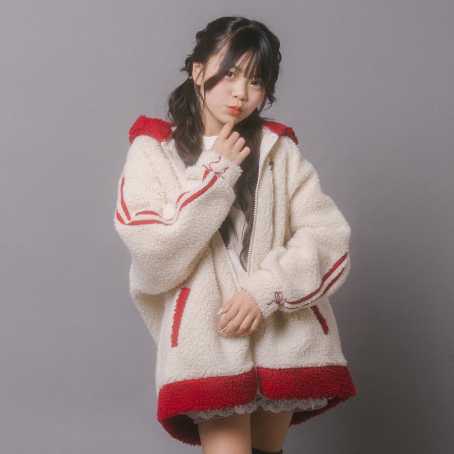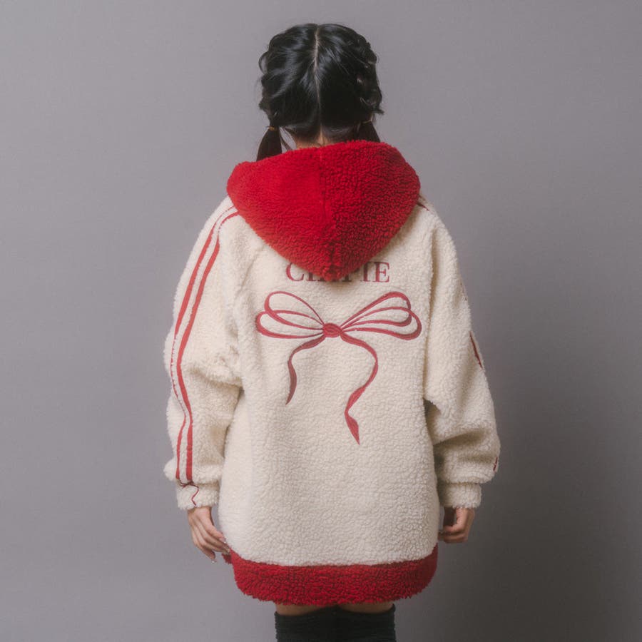 ラインとCHIPIEのリボン×ロゴ刺繍がポイントのボアジャケット。