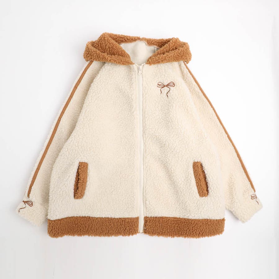 おうちで洗える!オーバーサイズサイドラインバックリボンボアアウター
