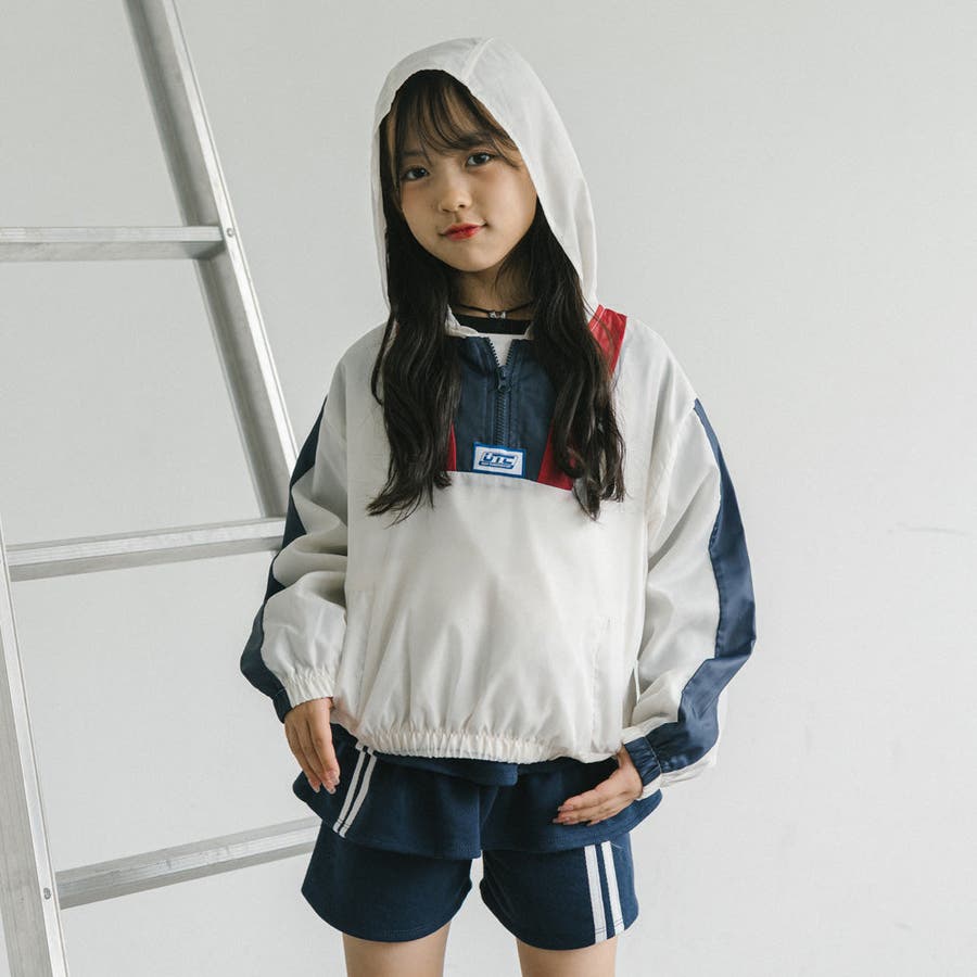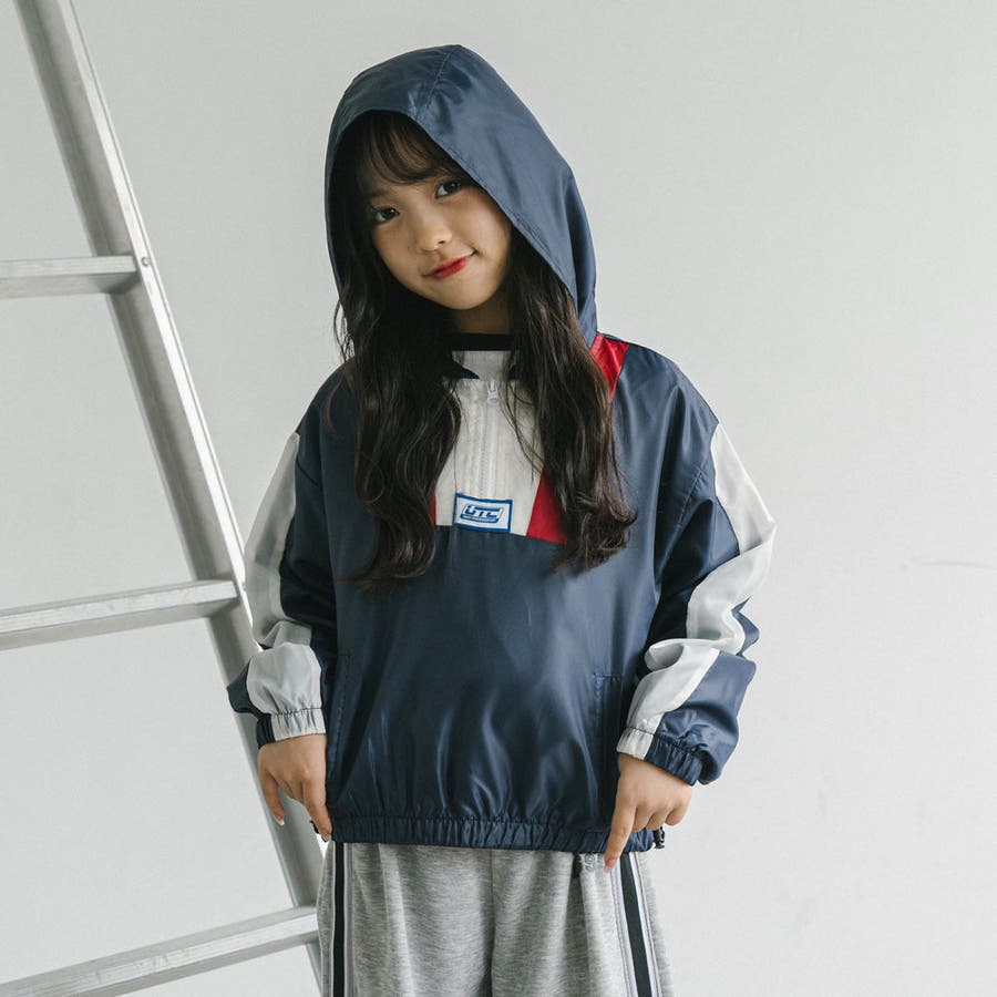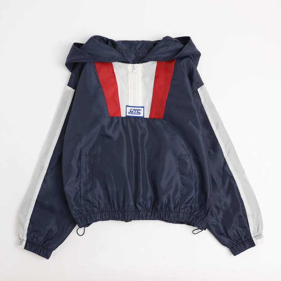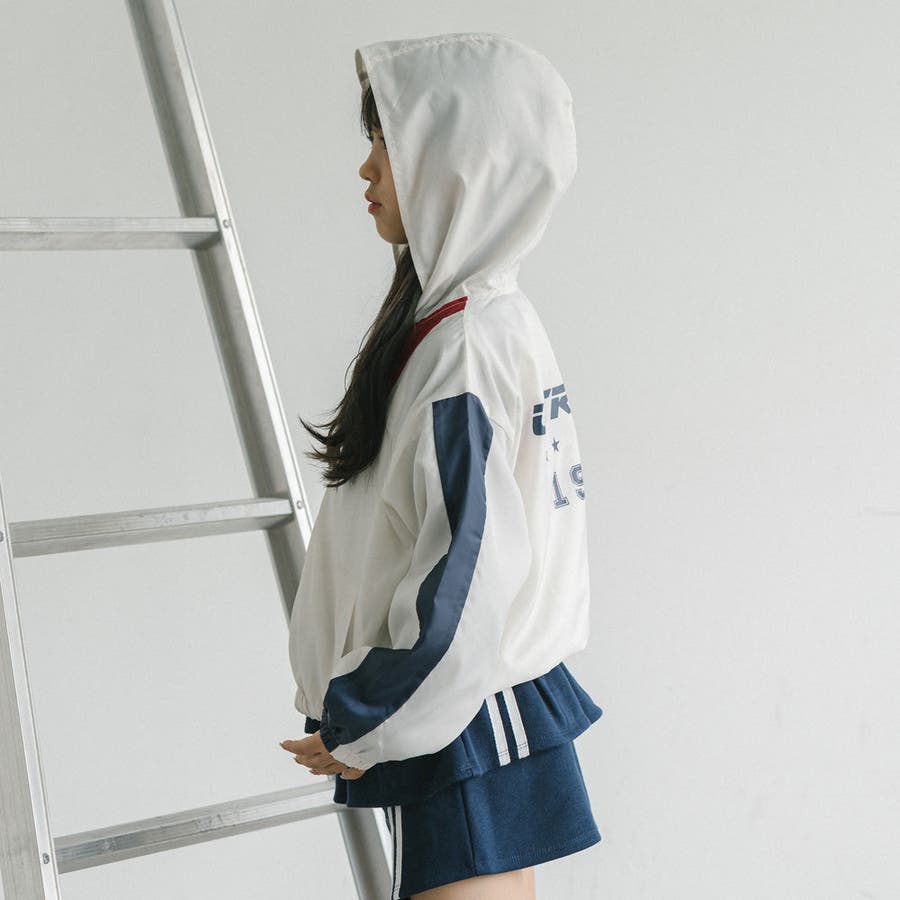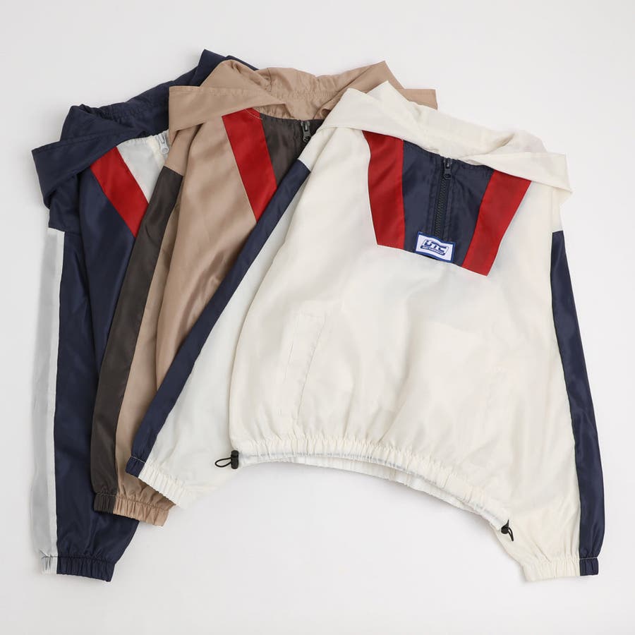 軽くてタフなさらツヤタフタ素材を使用した配色デザインのフード付きアノラックジャケット。