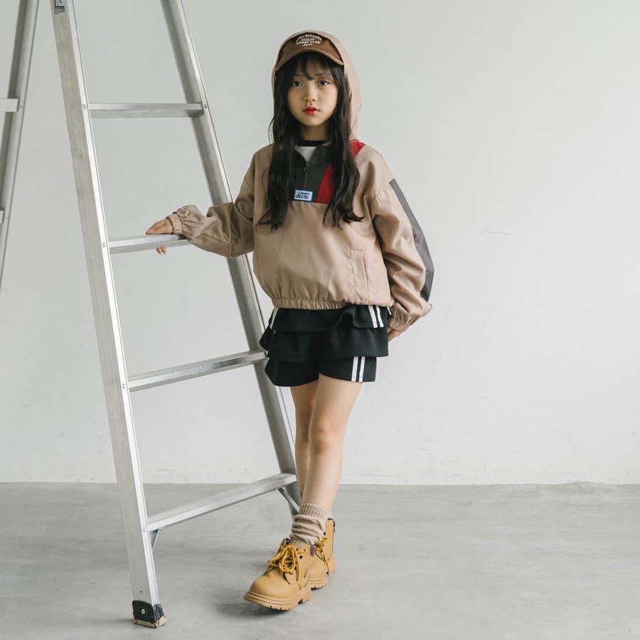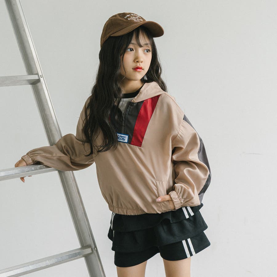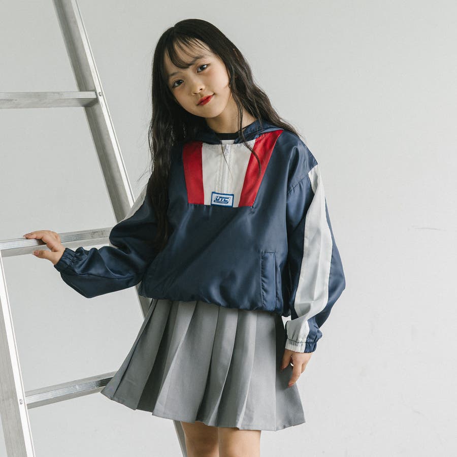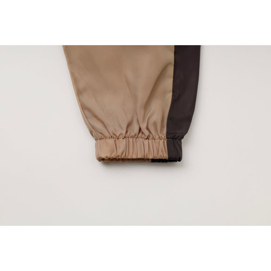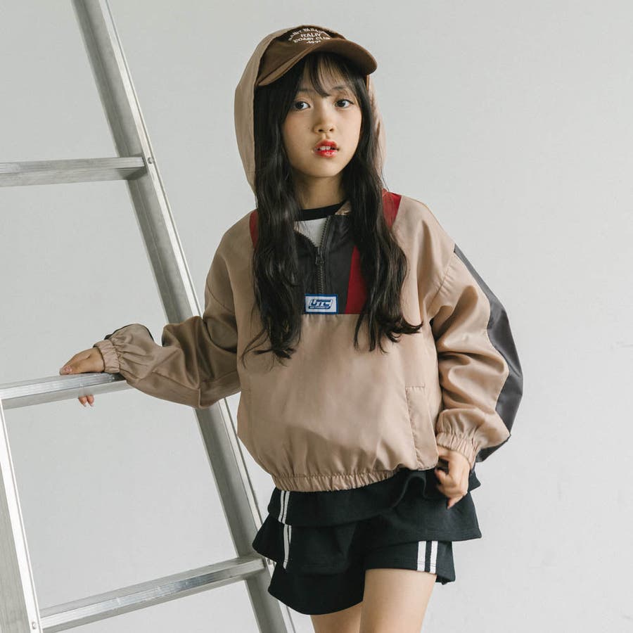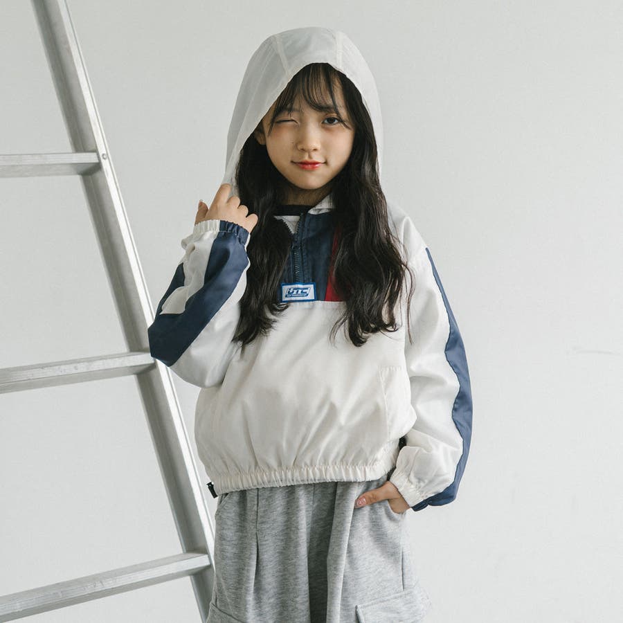 軽くてタフなさらツヤタフタ素材を使用した配色デザインのフード付きアノラックジャケット。