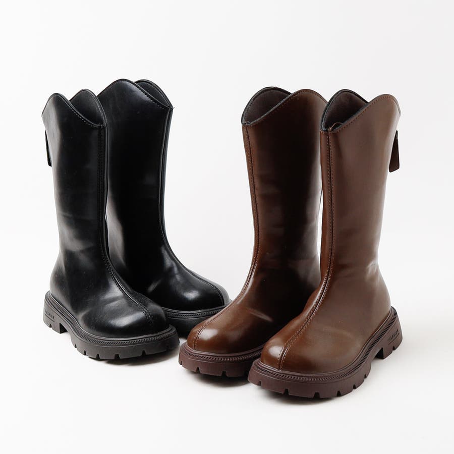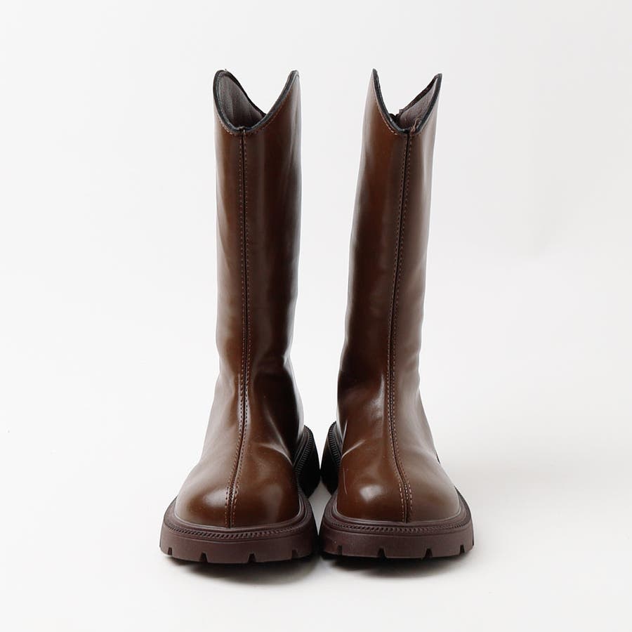 フロントステッチデザインロングブーツ