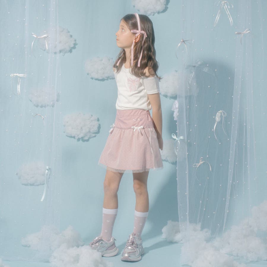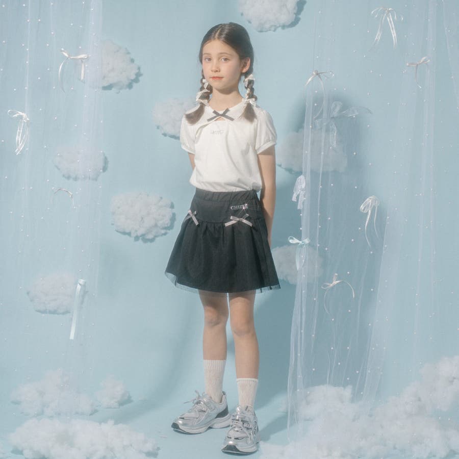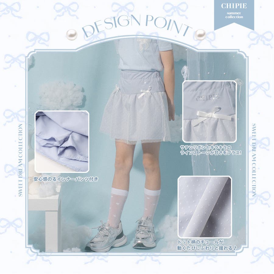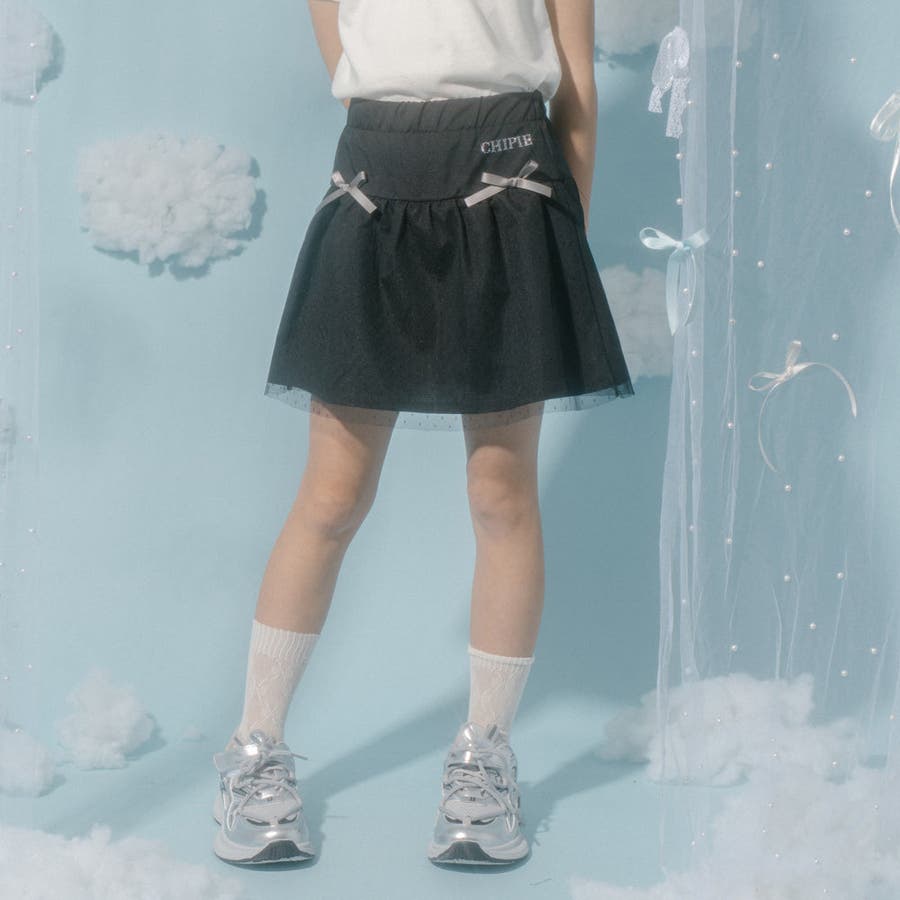 チュール&リボンで甘い要素をプラスしたインナーパンツ付きミニスカート。