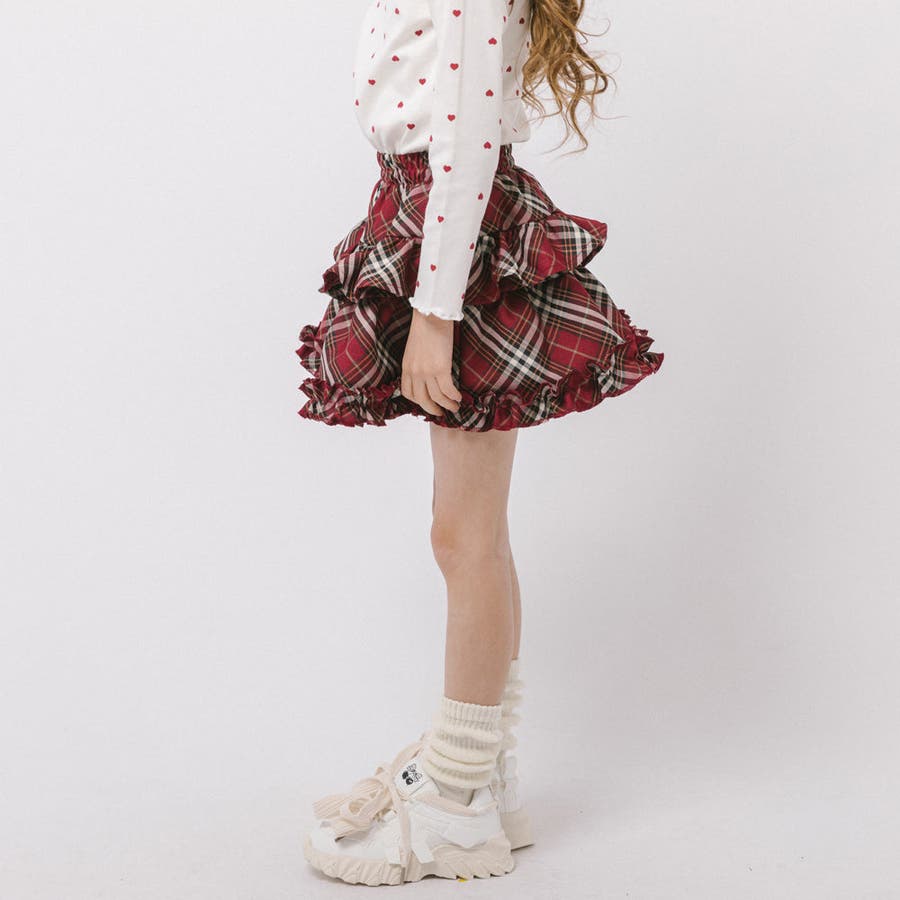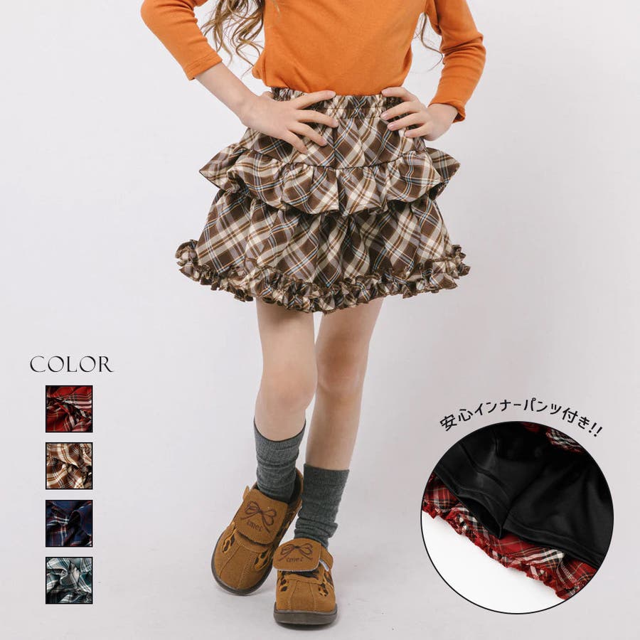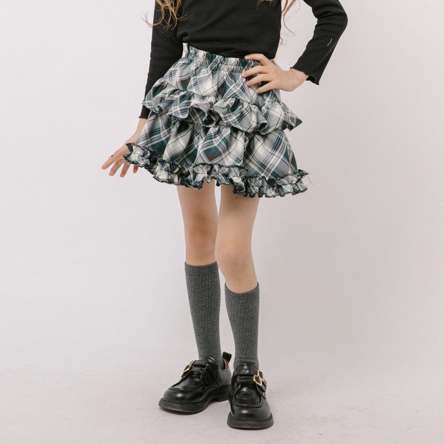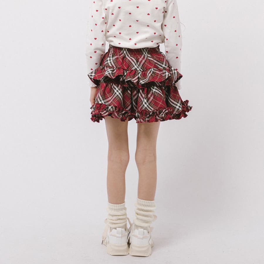 【インナーパンツ付き】ティアードフリルチェックスカート