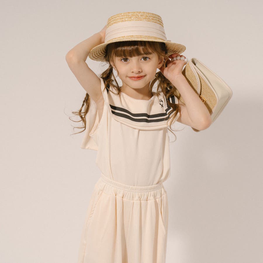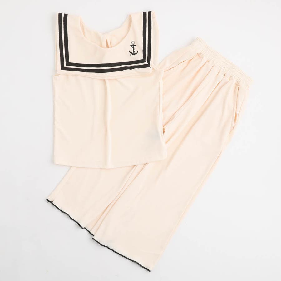 マリンセーラーノースリーブトップス+メロウデザインリラックスパンツ