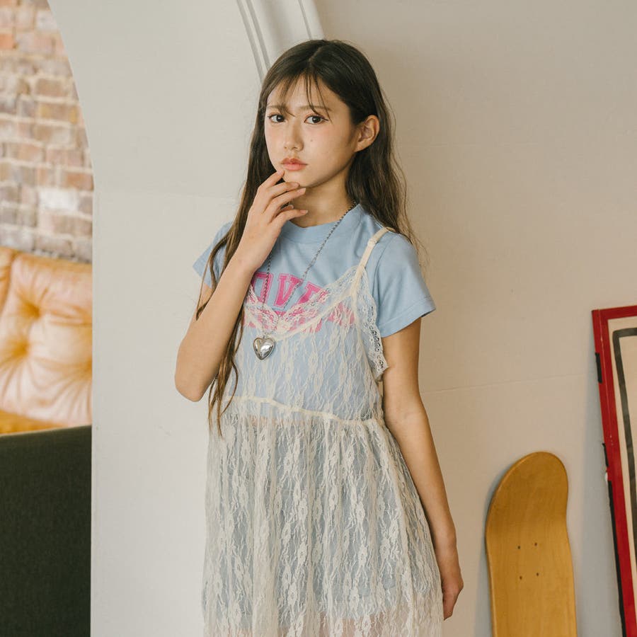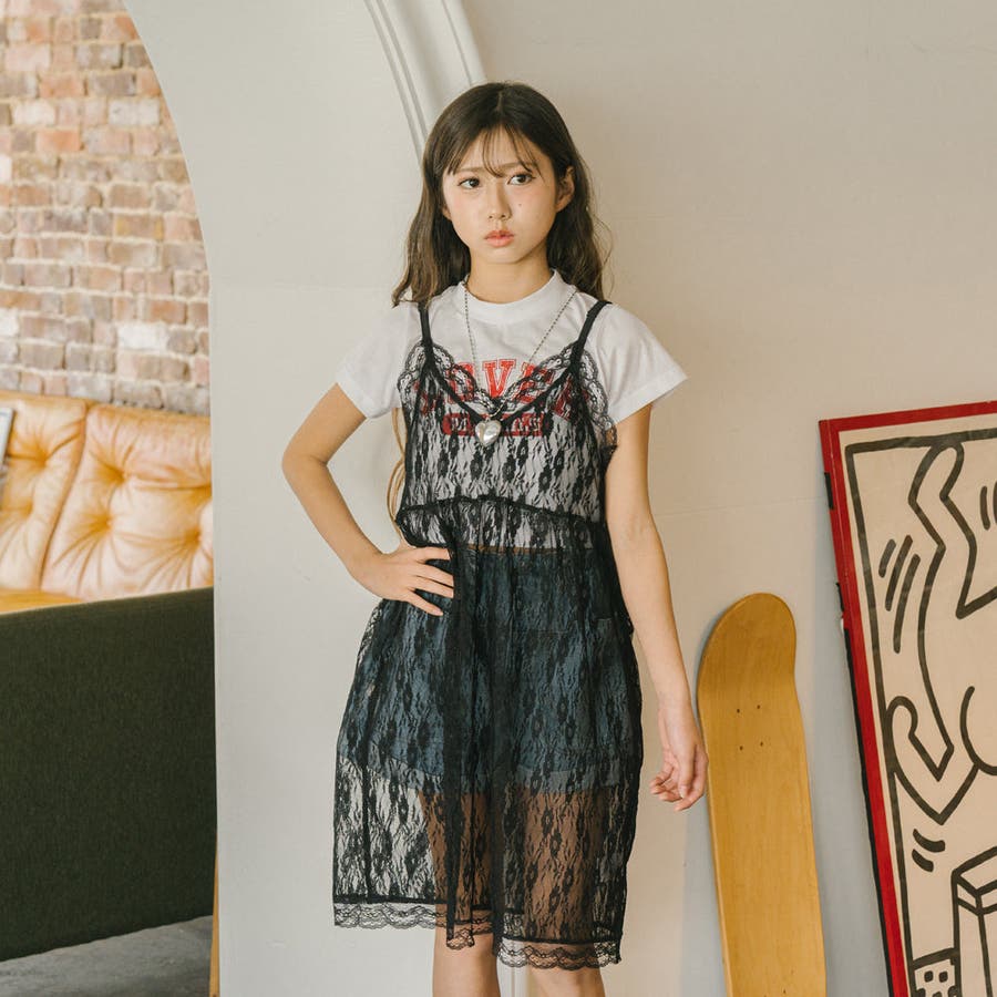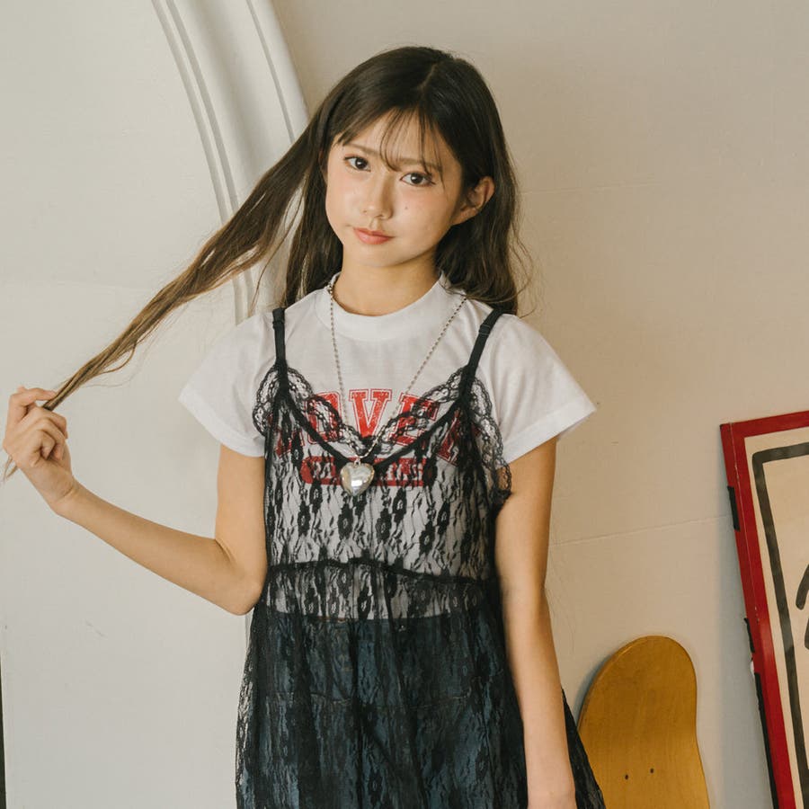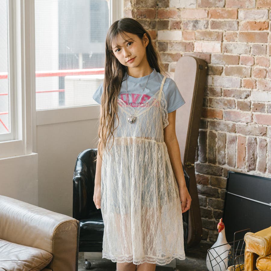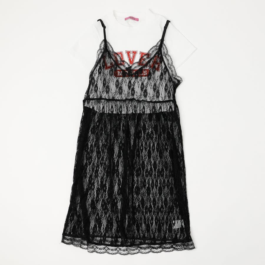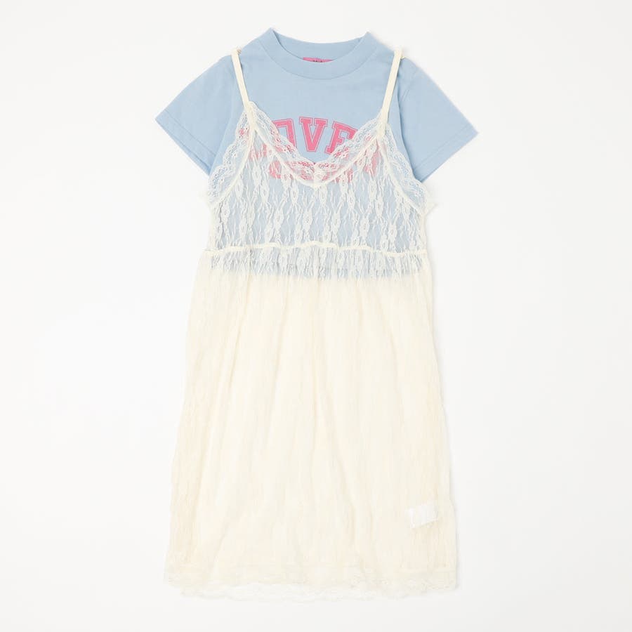 レースキャミワンピース+ロゴデザインちびTシャツ