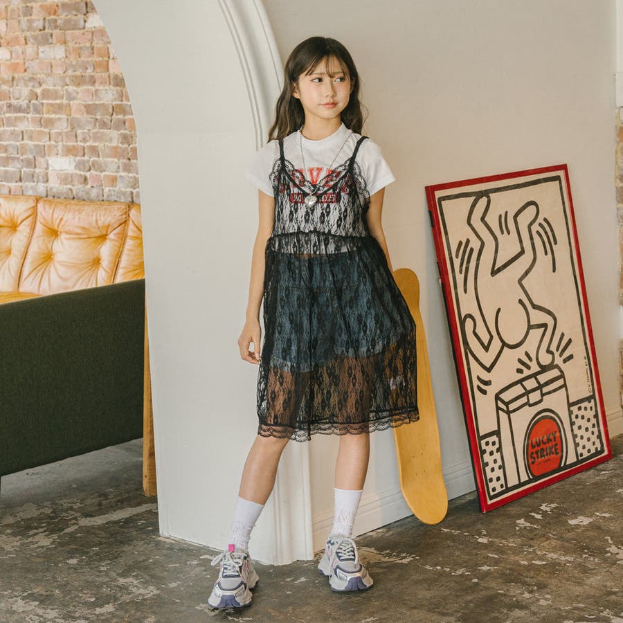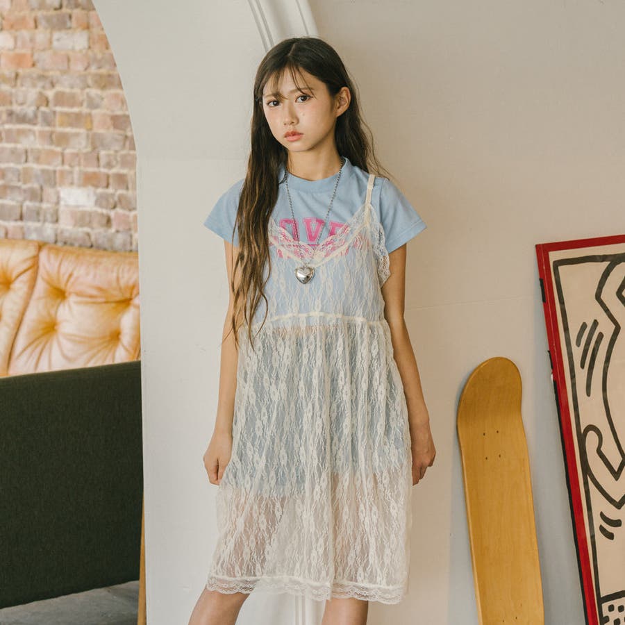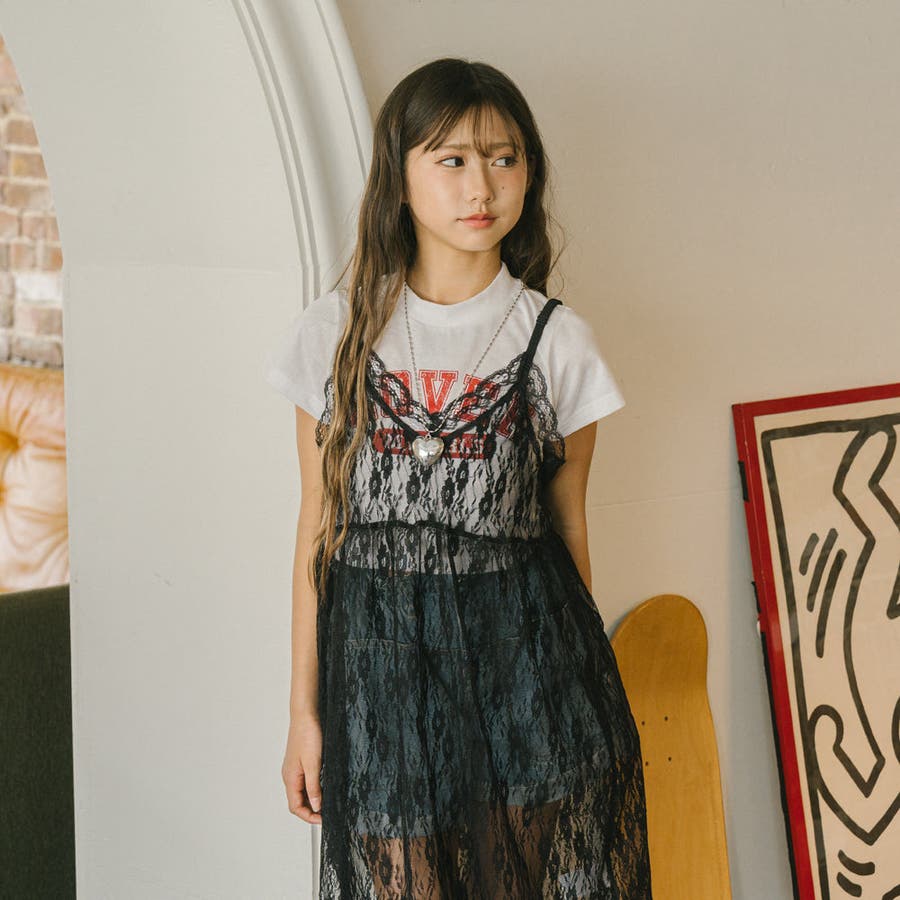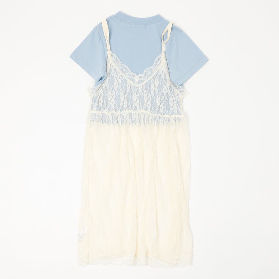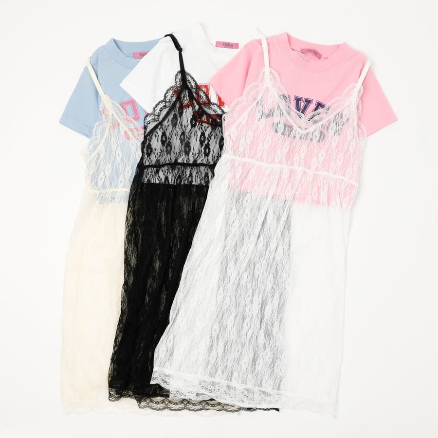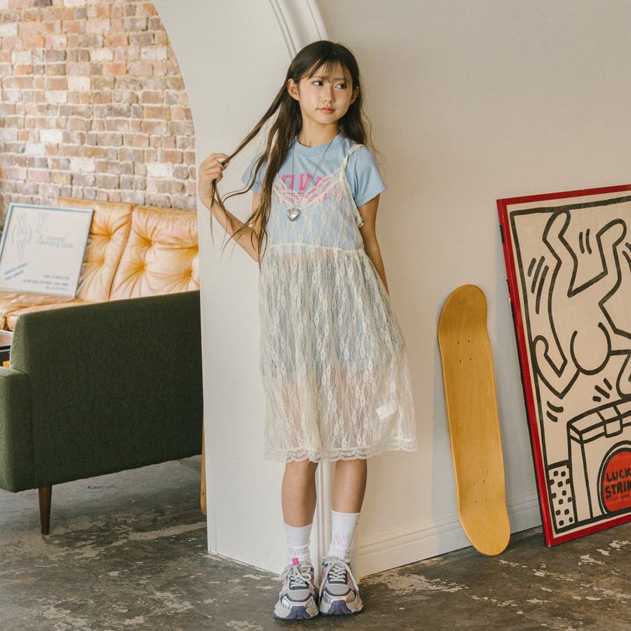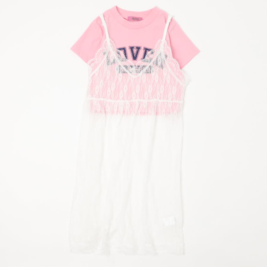 レースキャミワンピース+ロゴデザインちびTシャツ