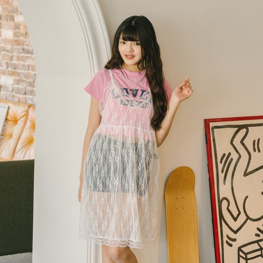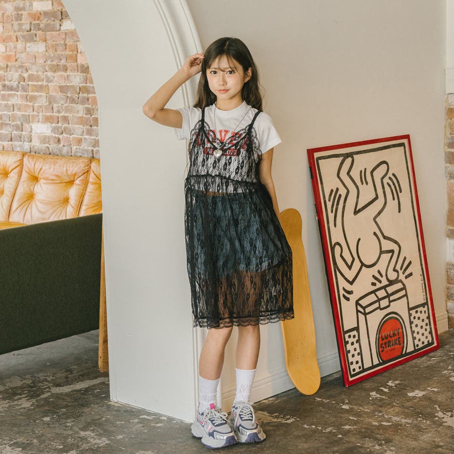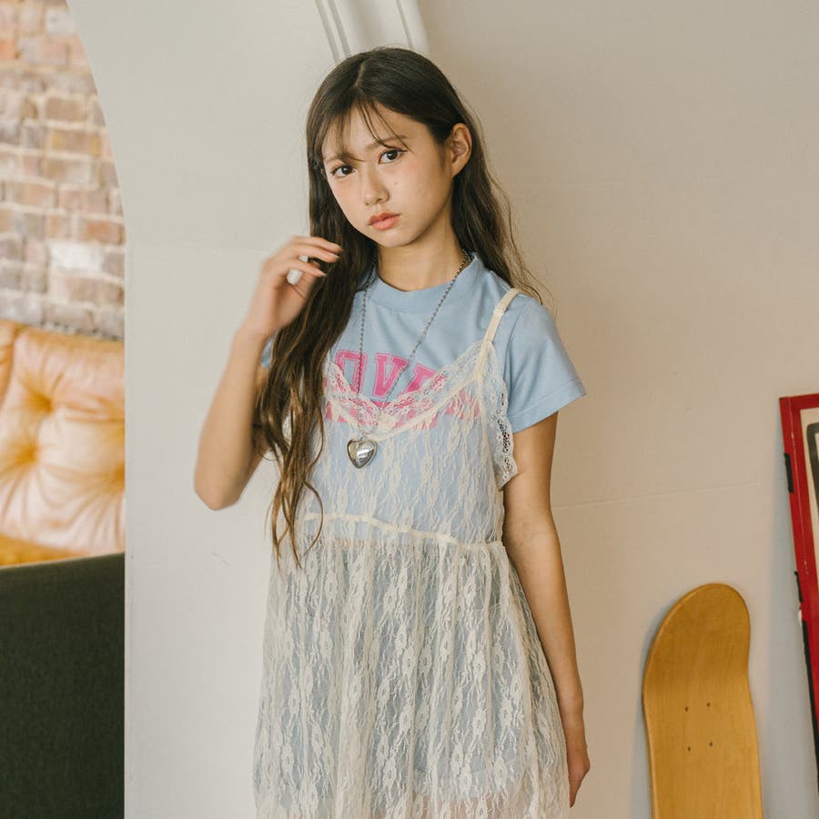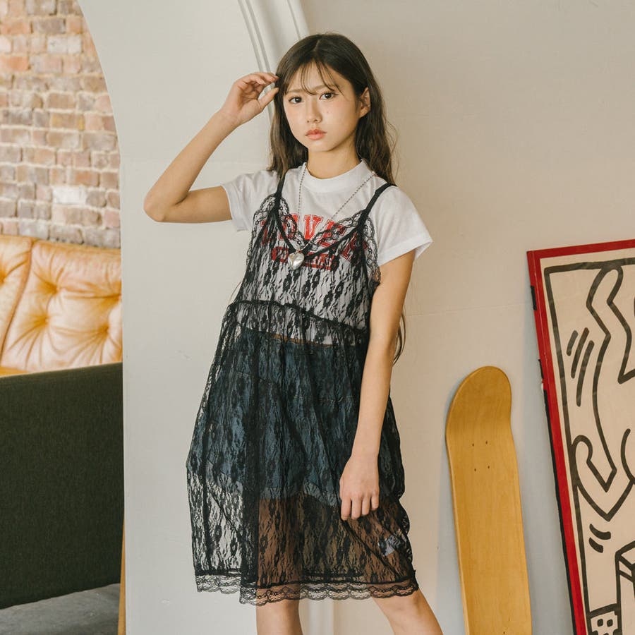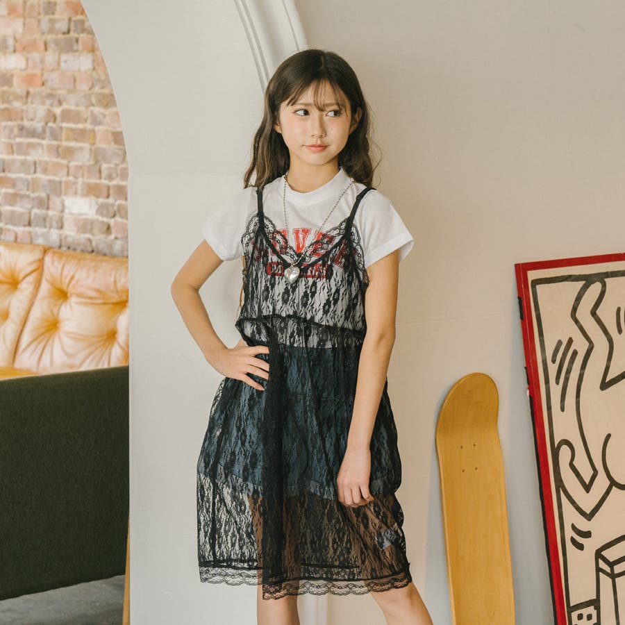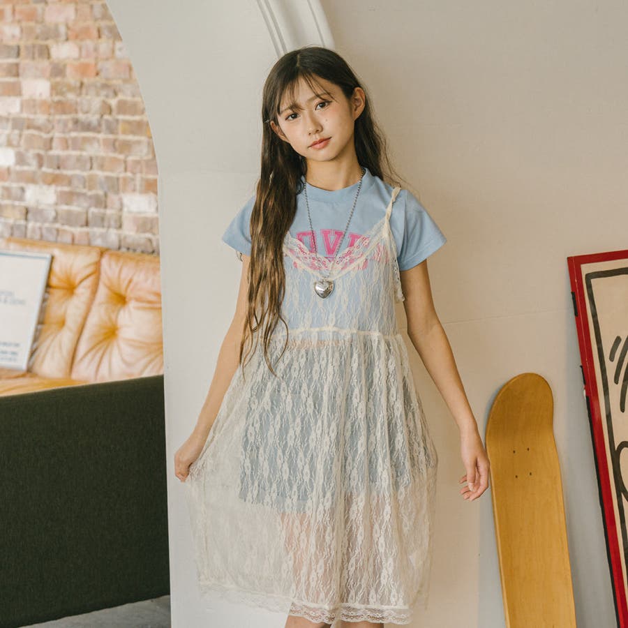 レースキャミワンピース+ロゴデザインちびTシャツ