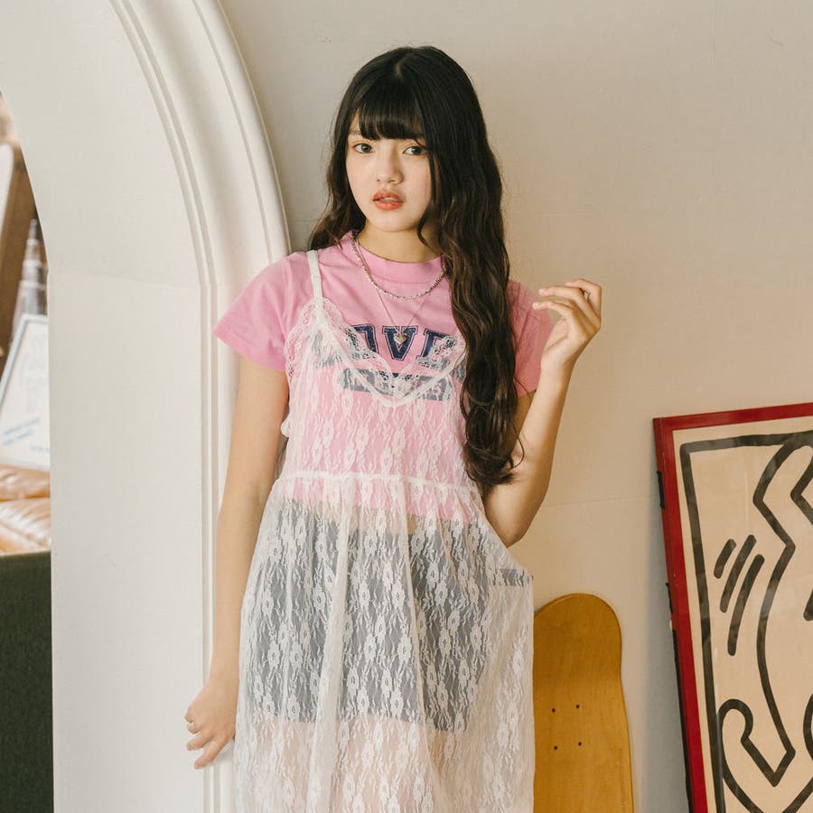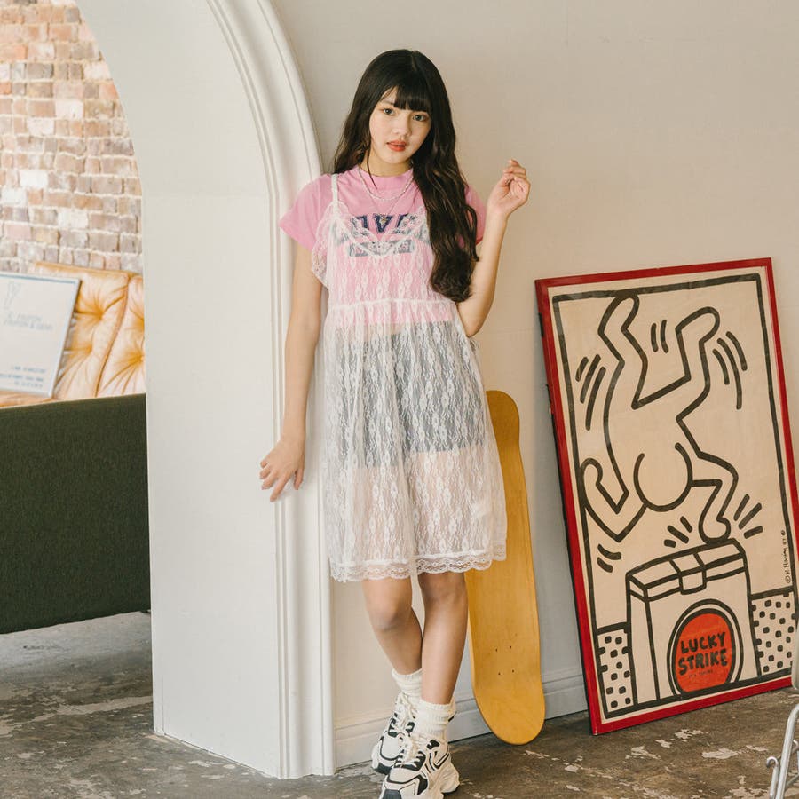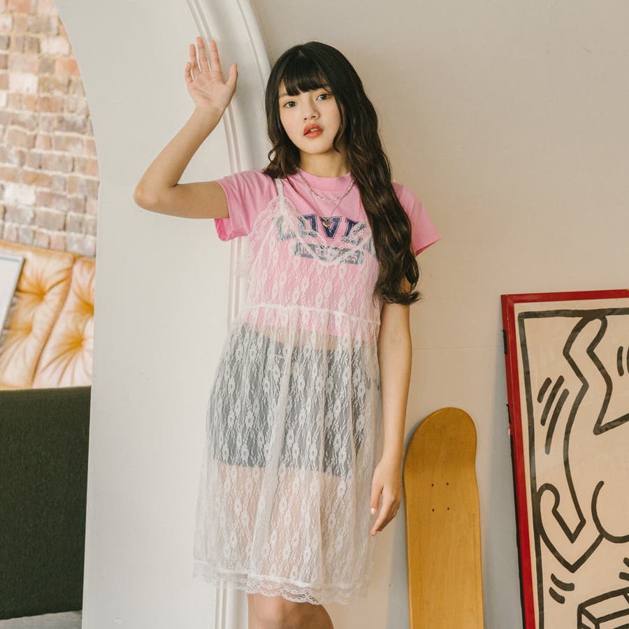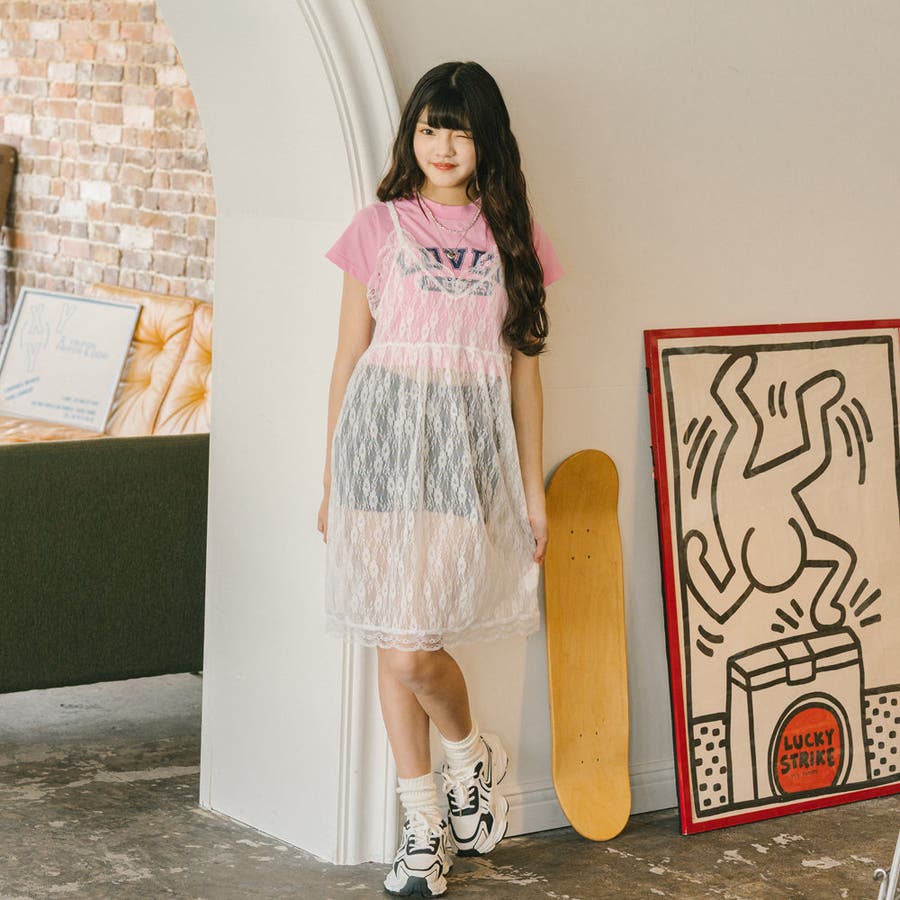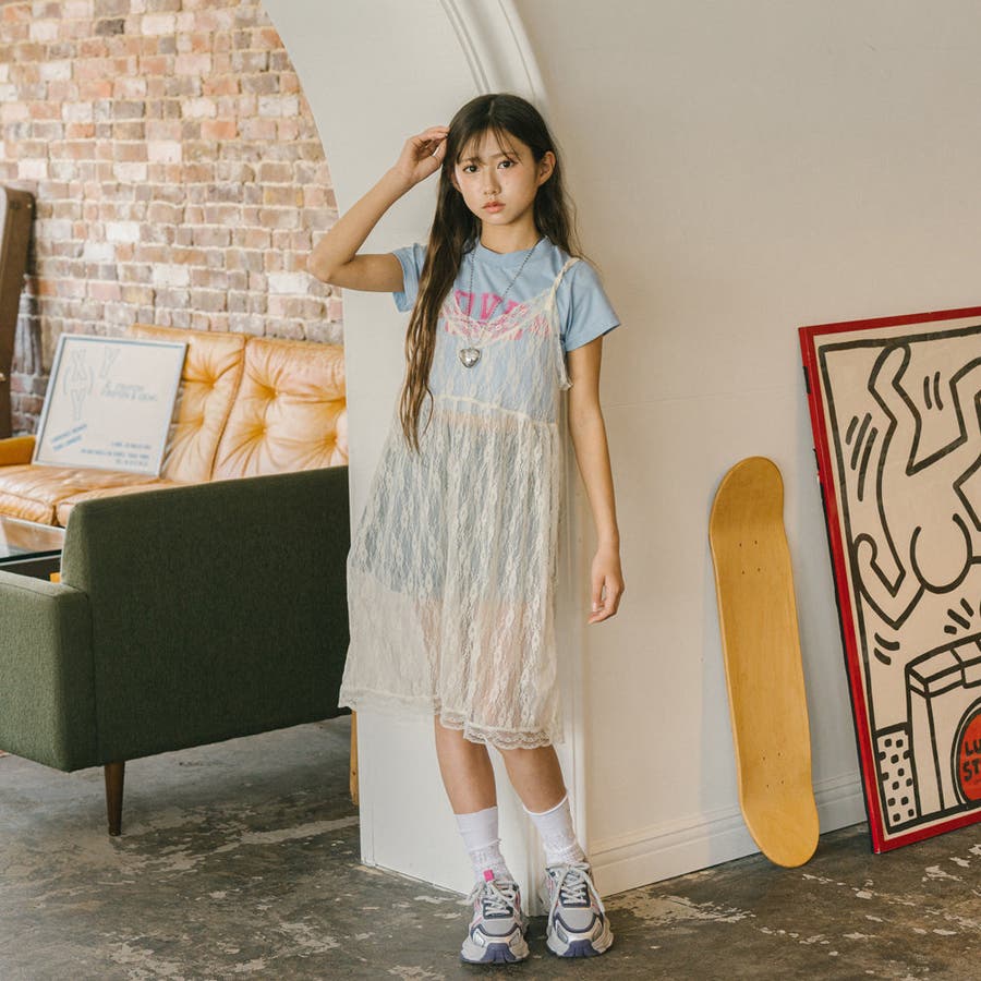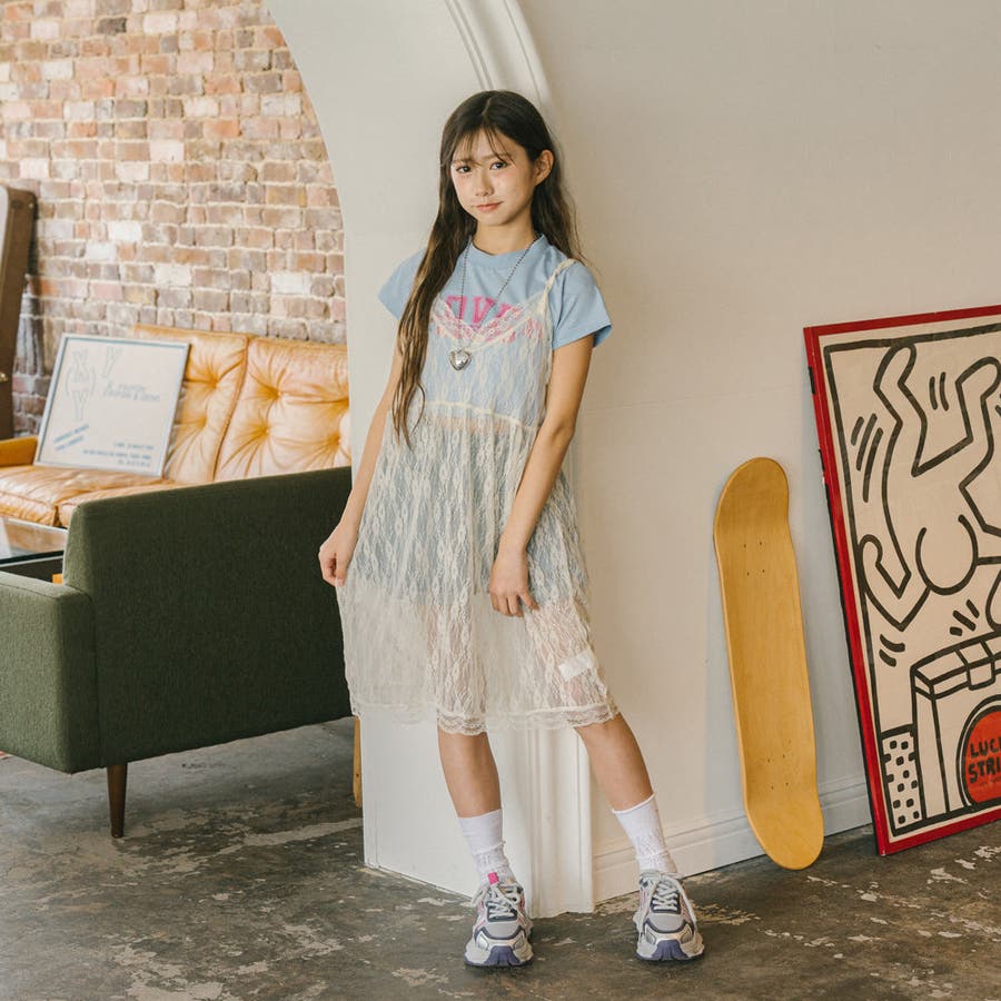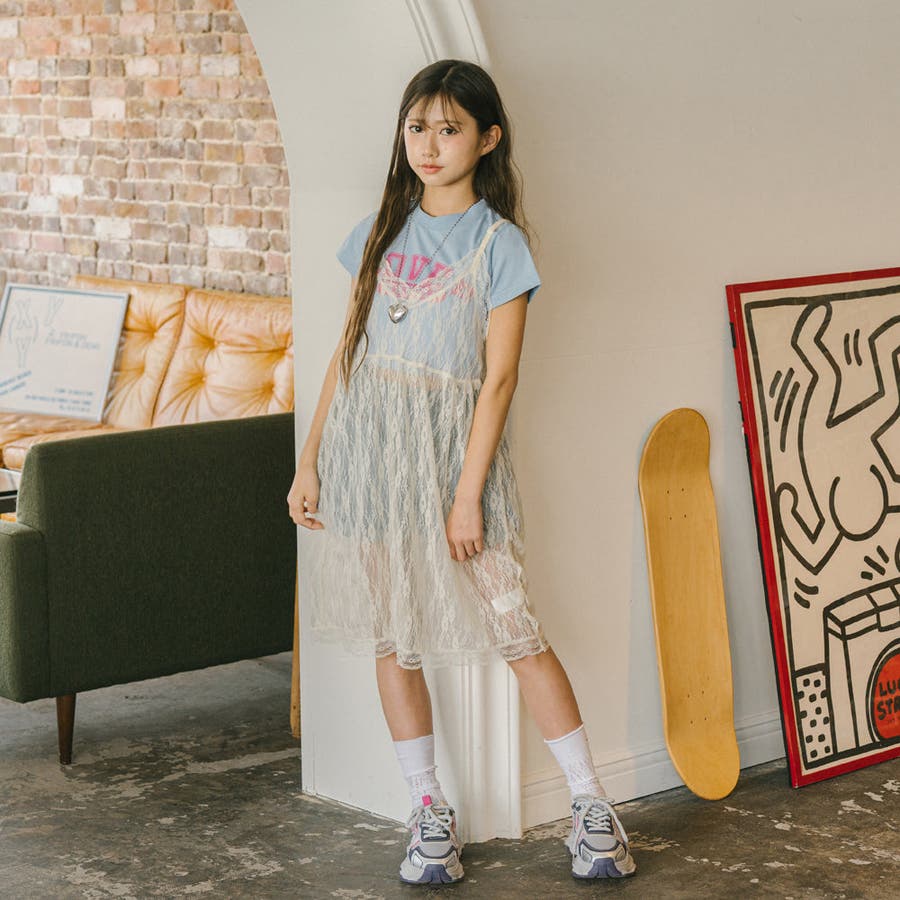 レースキャミワンピース+ロゴデザインちびTシャツ