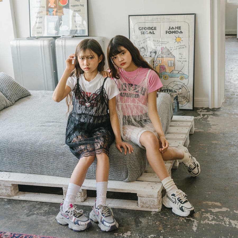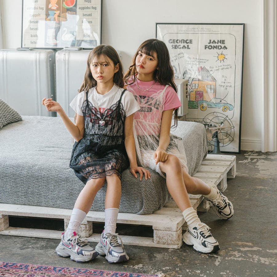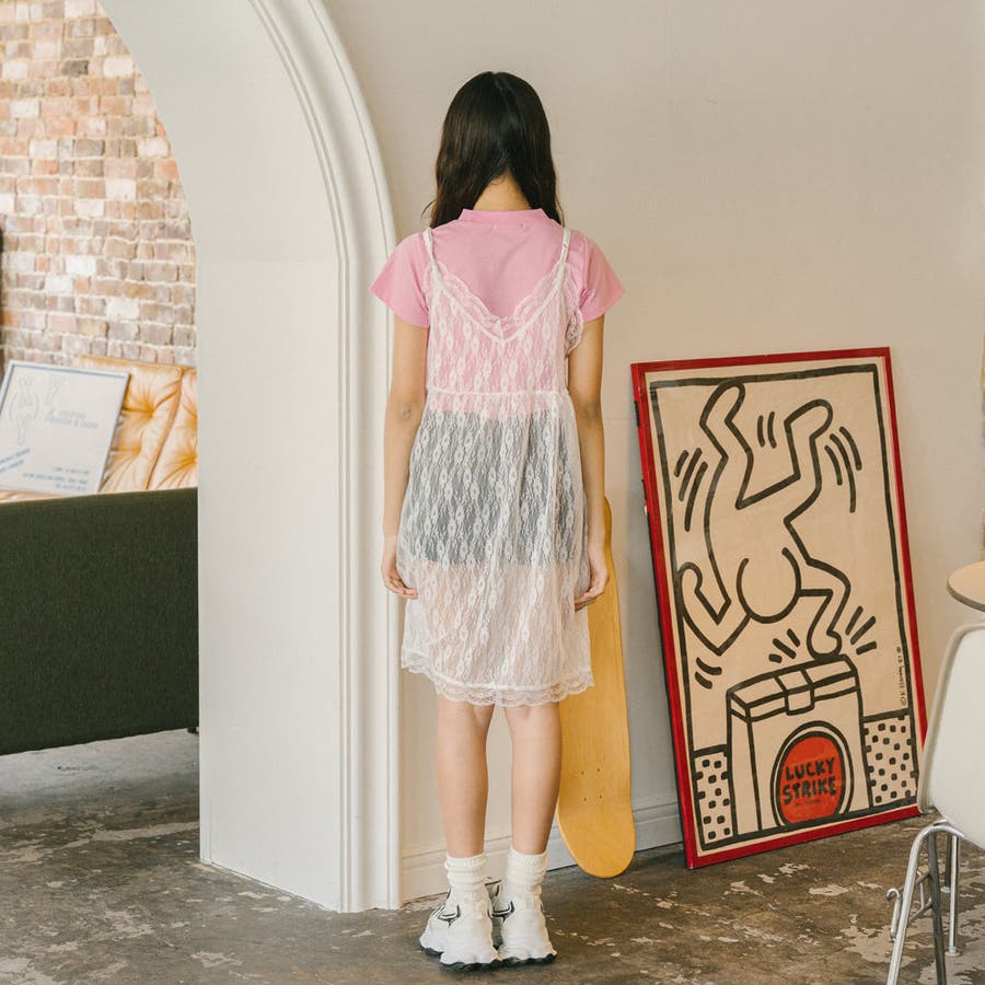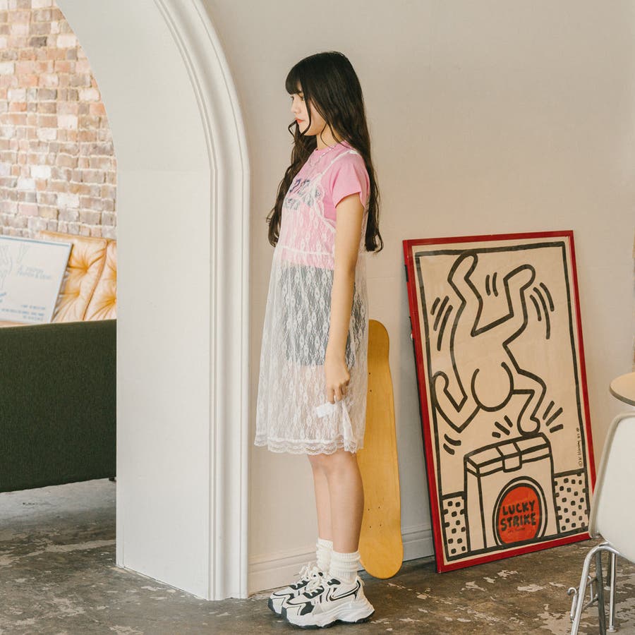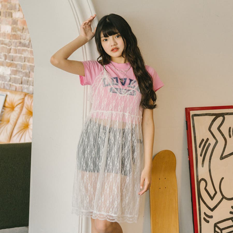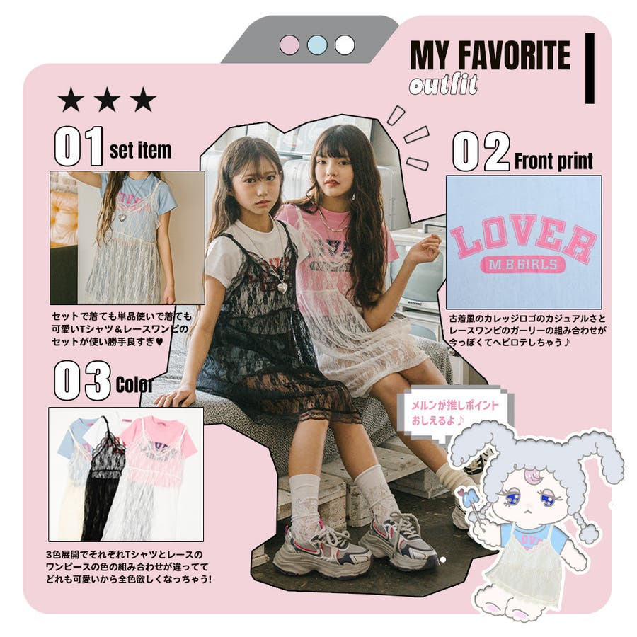 レースキャミワンピース+ロゴデザインちびTシャツ
