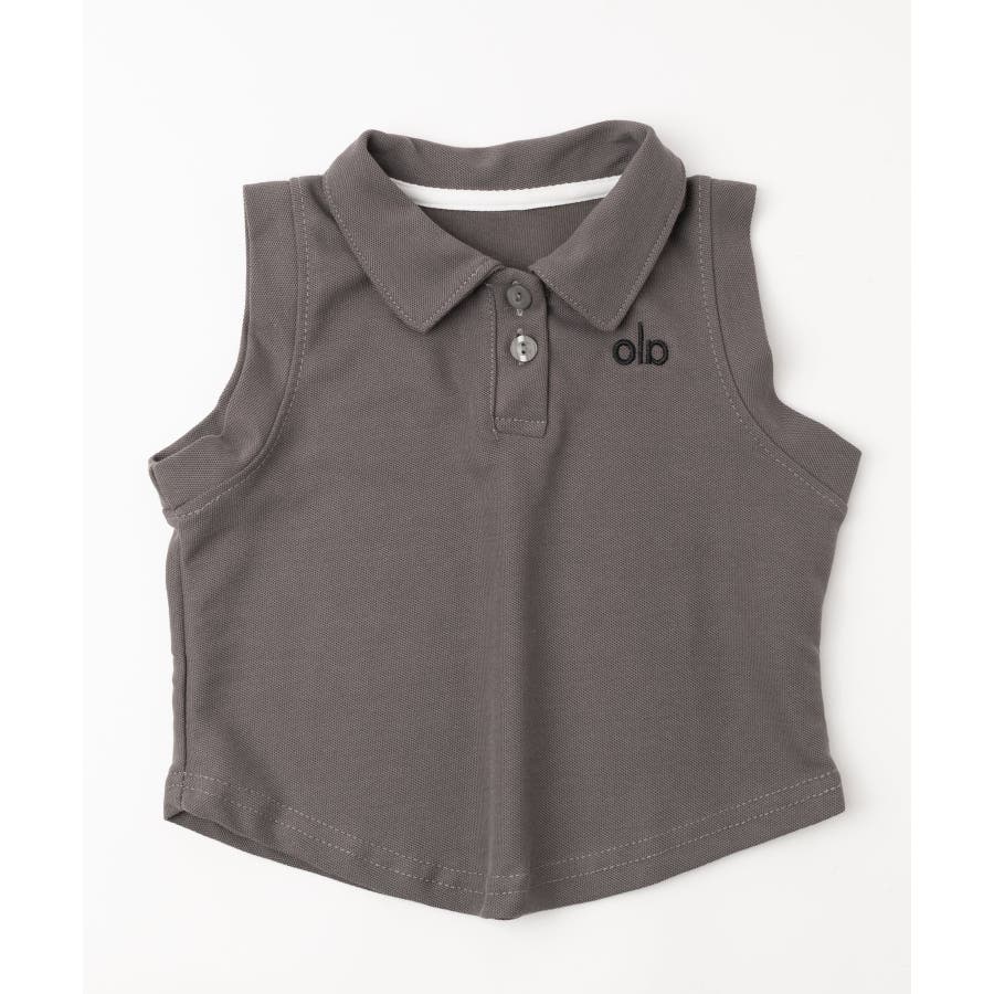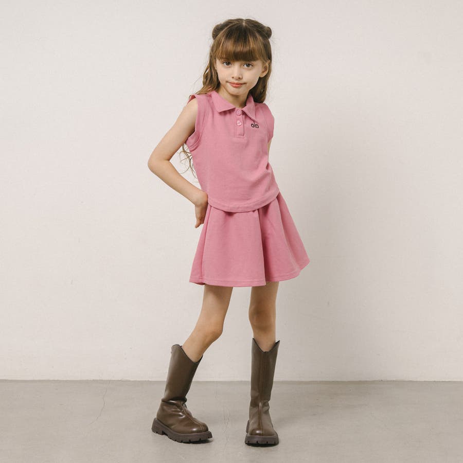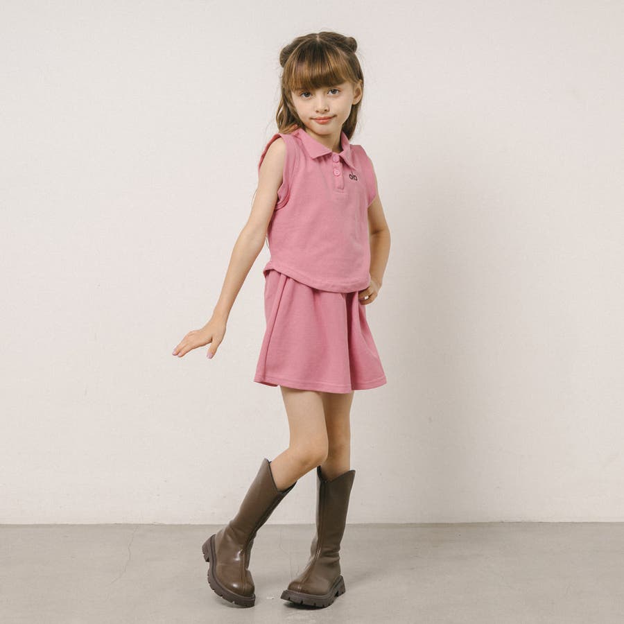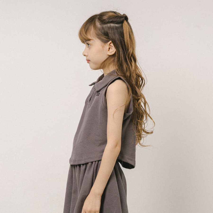 ポロ衿が今季らしく可愛いトップスにはさりげないワンポイント刺繍入り。